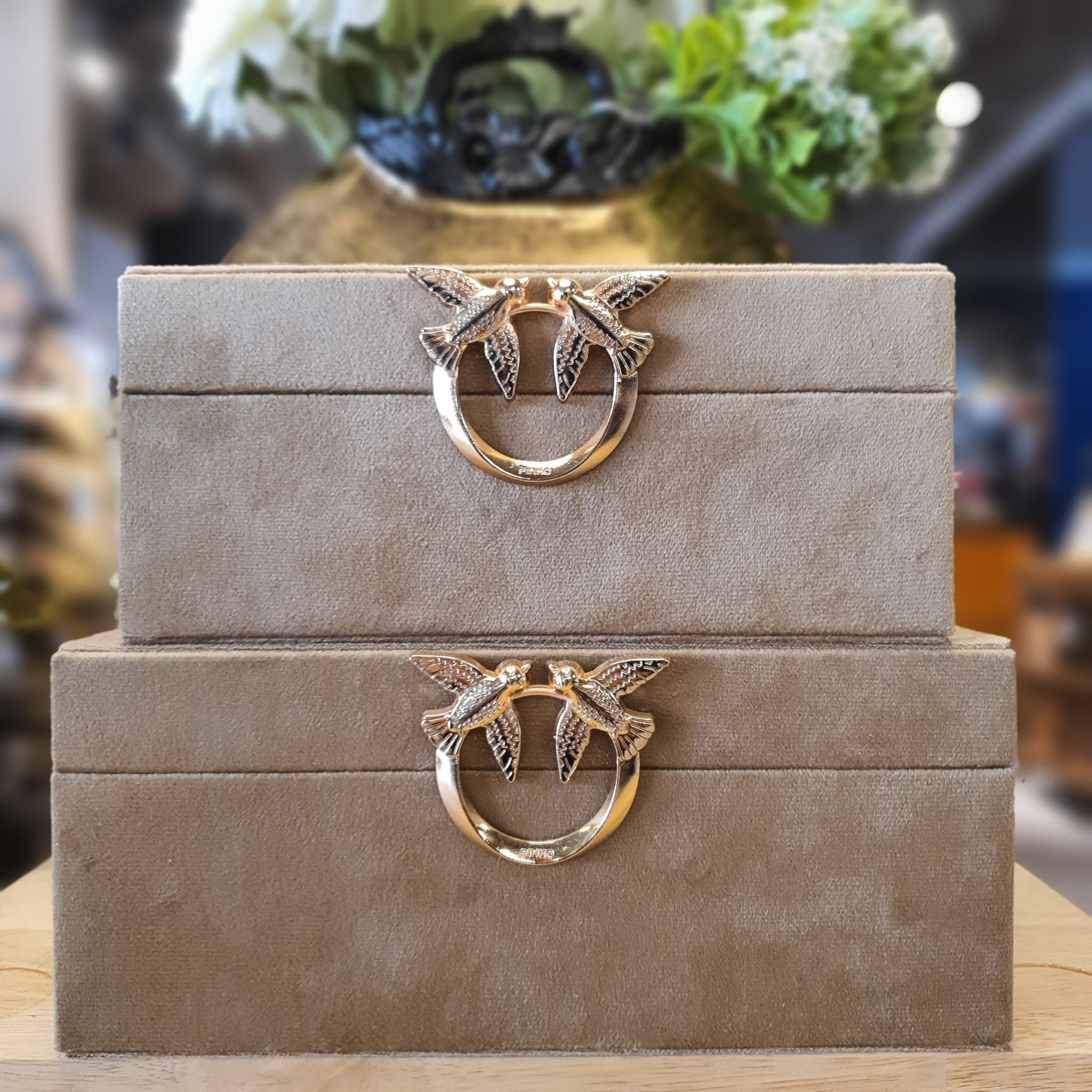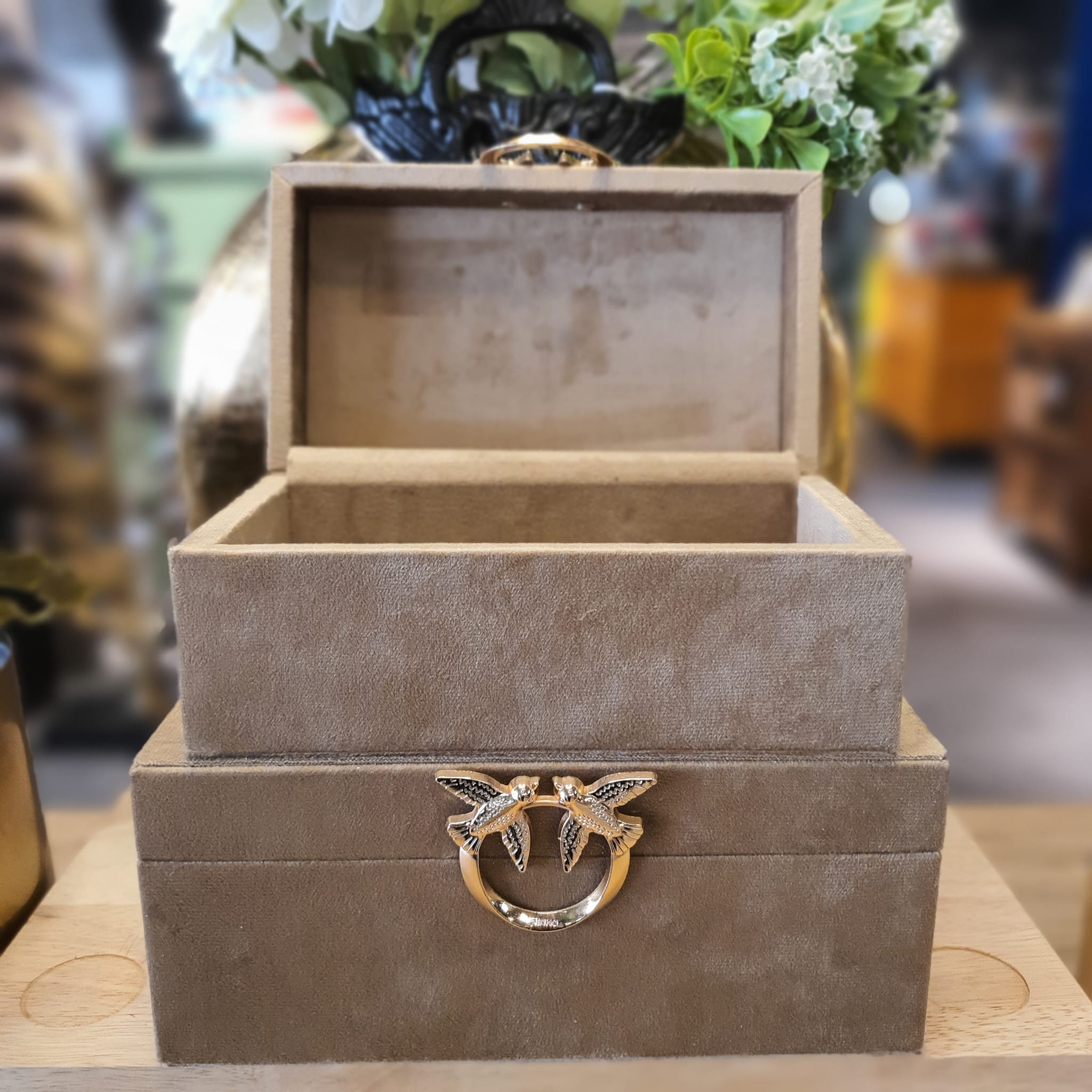 2'Li Obje süet Kutu Kuş Detaylı