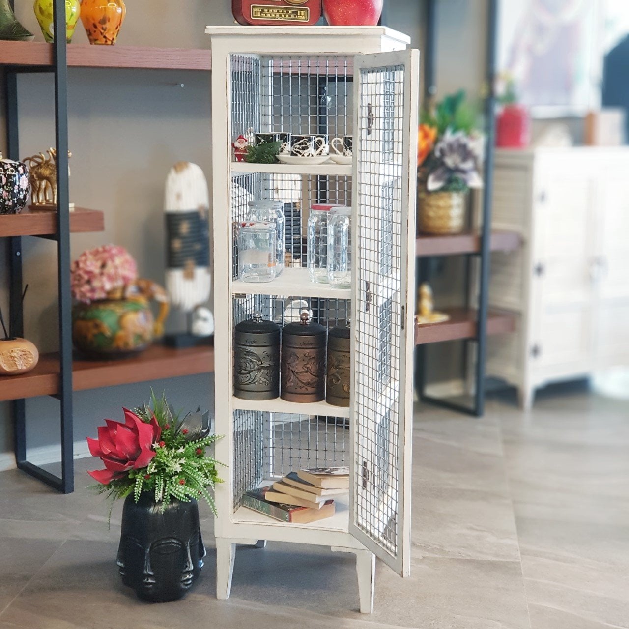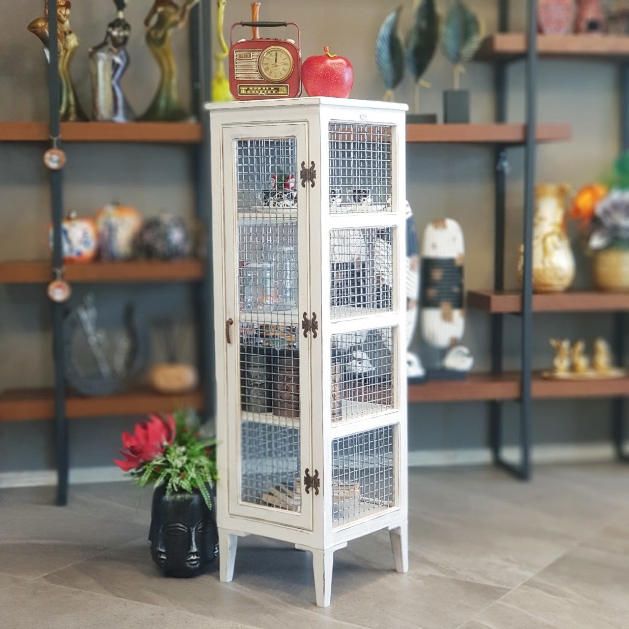 4 Raflı Derin Nostaljik Tel Dolap Büyük Boy