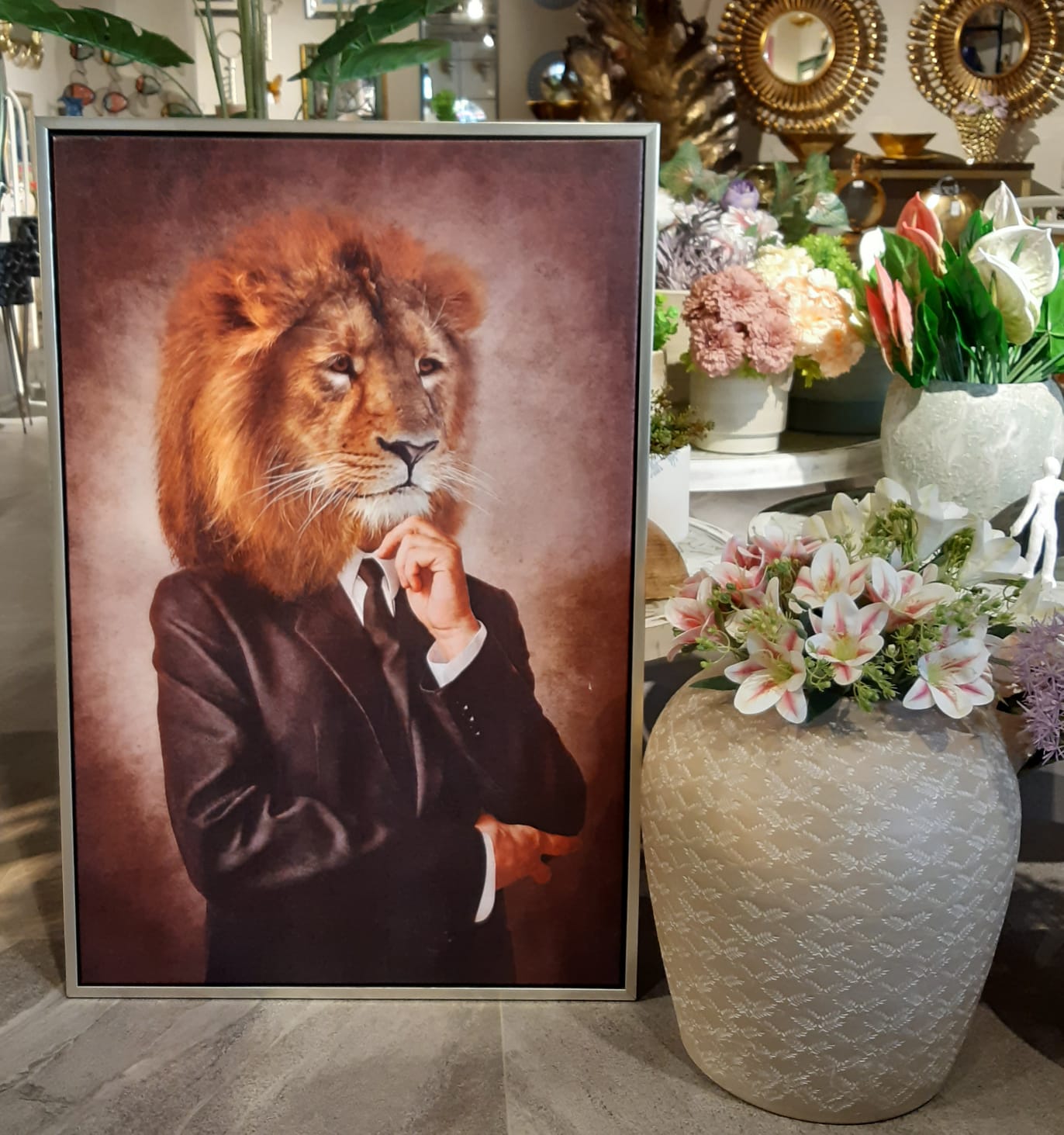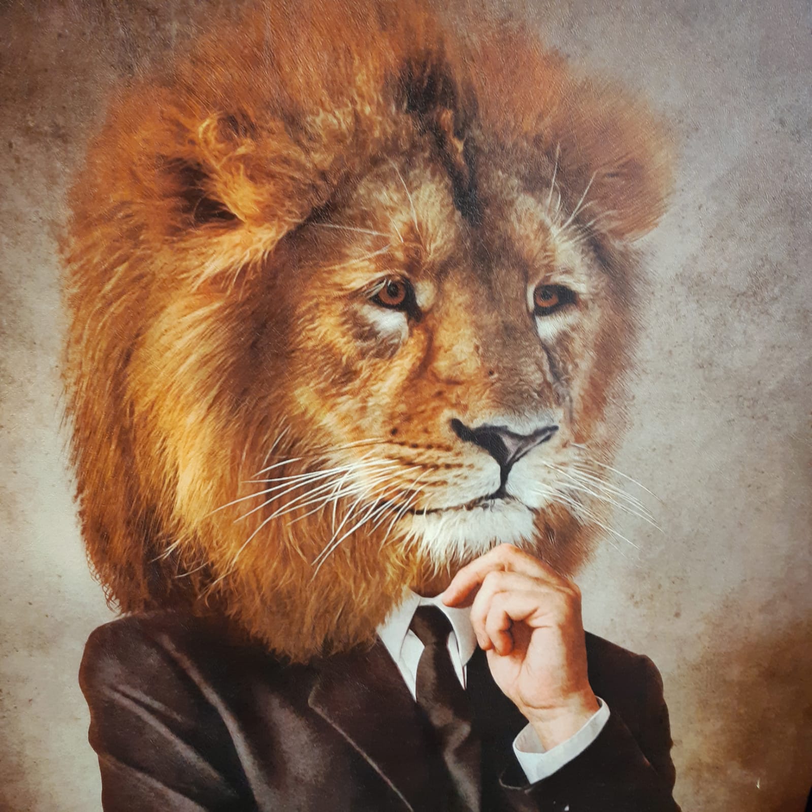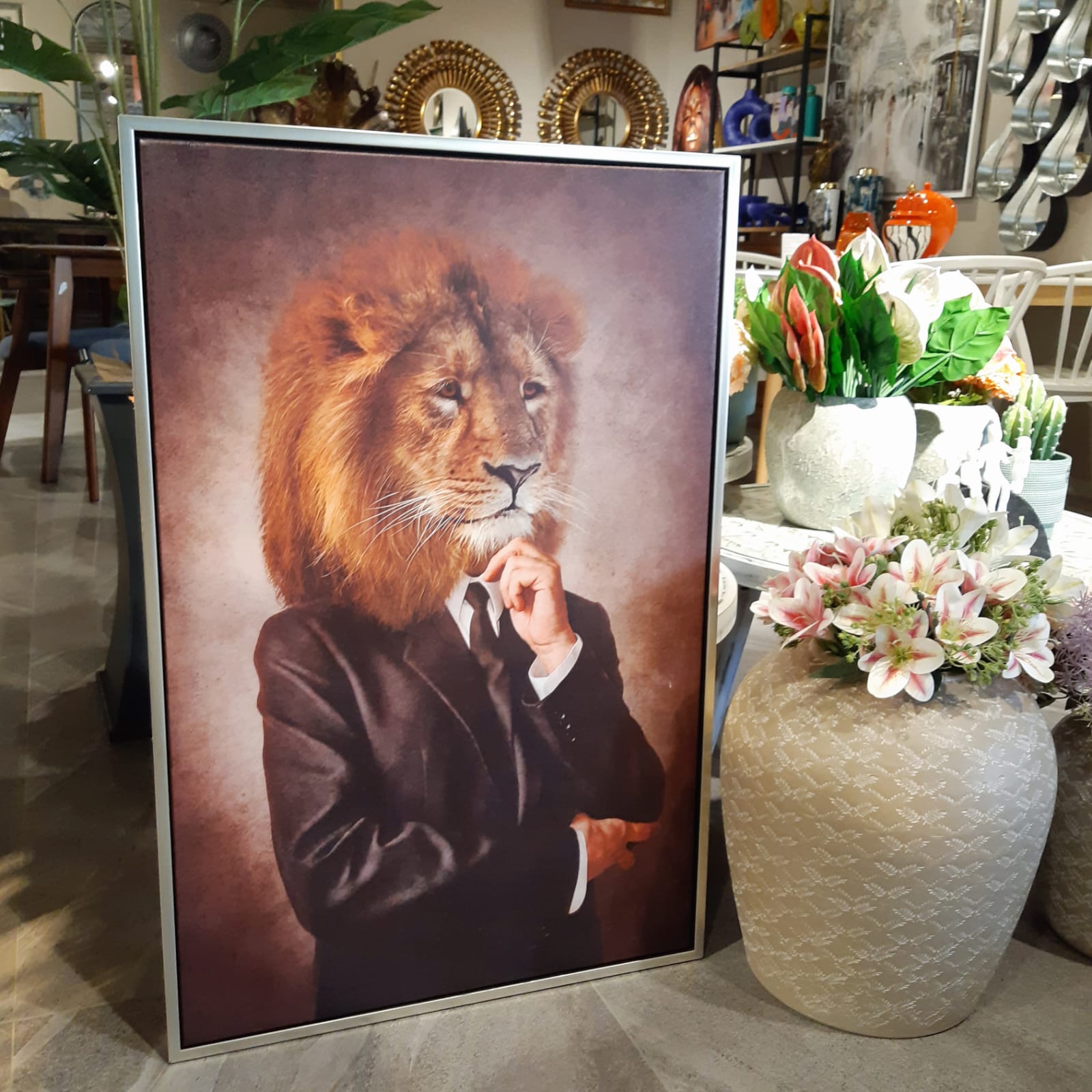 60cmX90cm Gümüş Çerçeveli AslanTablo