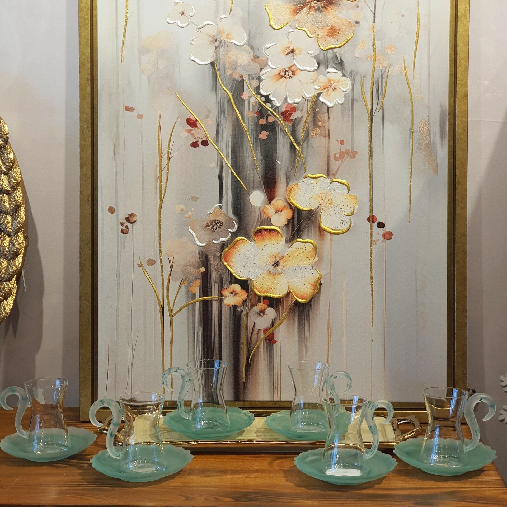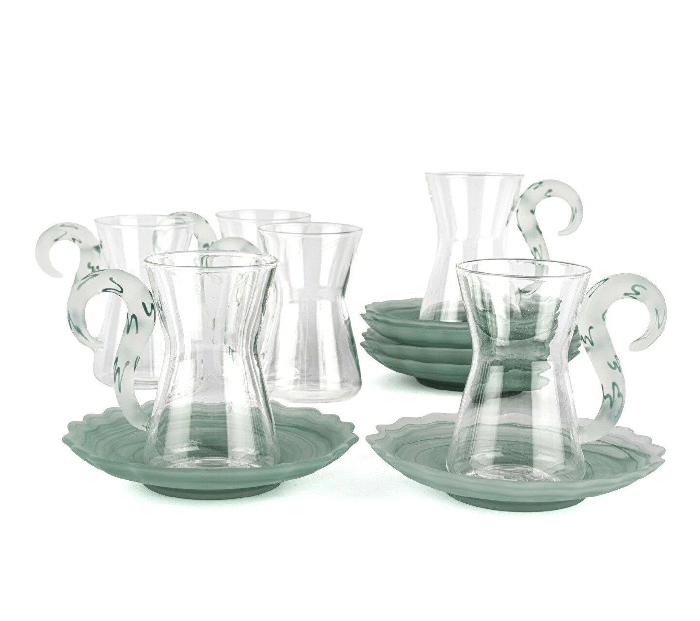 6lı Yeşil Kuğu Saplı Cam Çay Seti