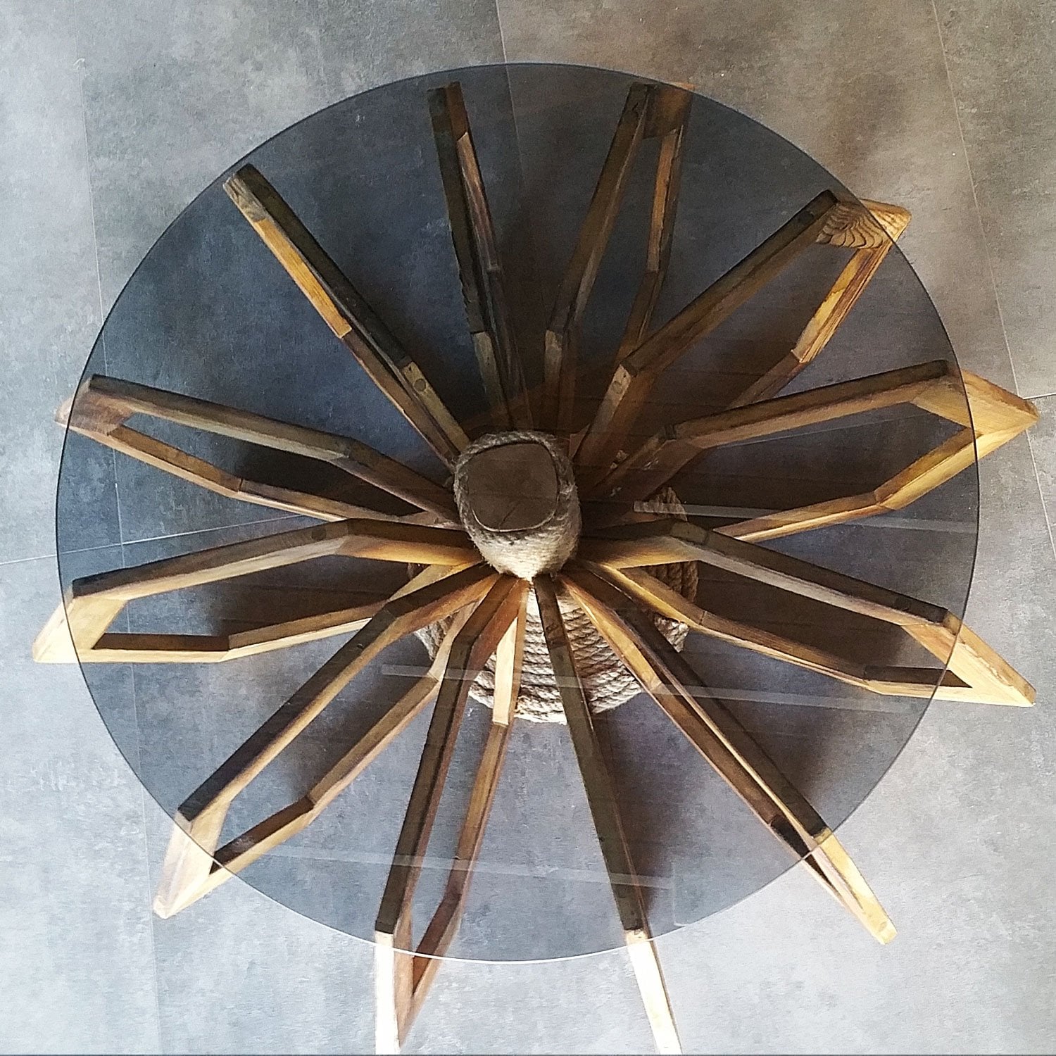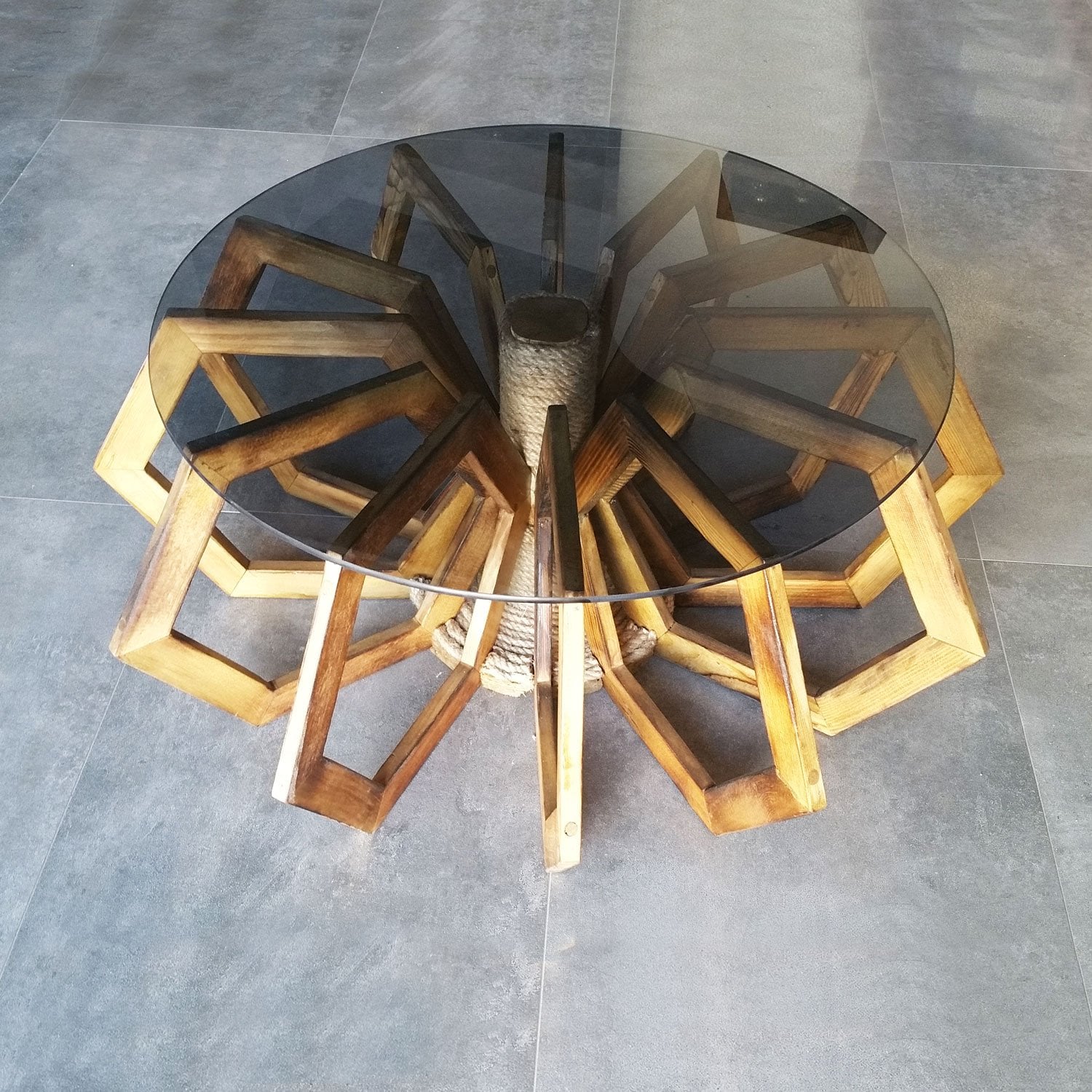 Masif eskitme ahşap. Su bazlı koruyucu.6mm füme cam ile.