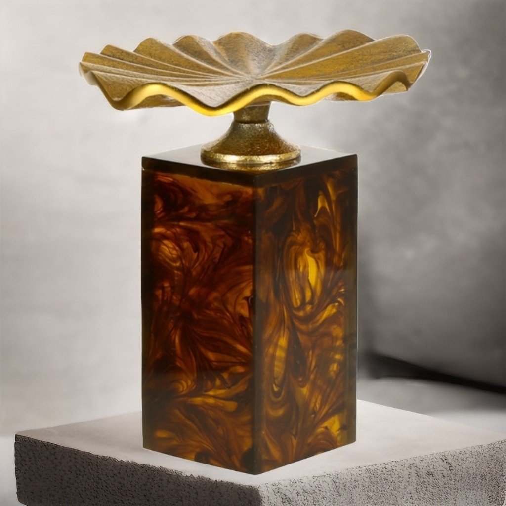 Alt gövdesi desenli epoksi malzemeden üretilen üst kısmında bulunan yaprak şekli metal malzemeden üretilerek doğada bulunan zarif detayları taklit ederek görsel zenginliği ön plana çıkarmıştır. Uzun yıllar dayanıklılığını koruyacaktır.