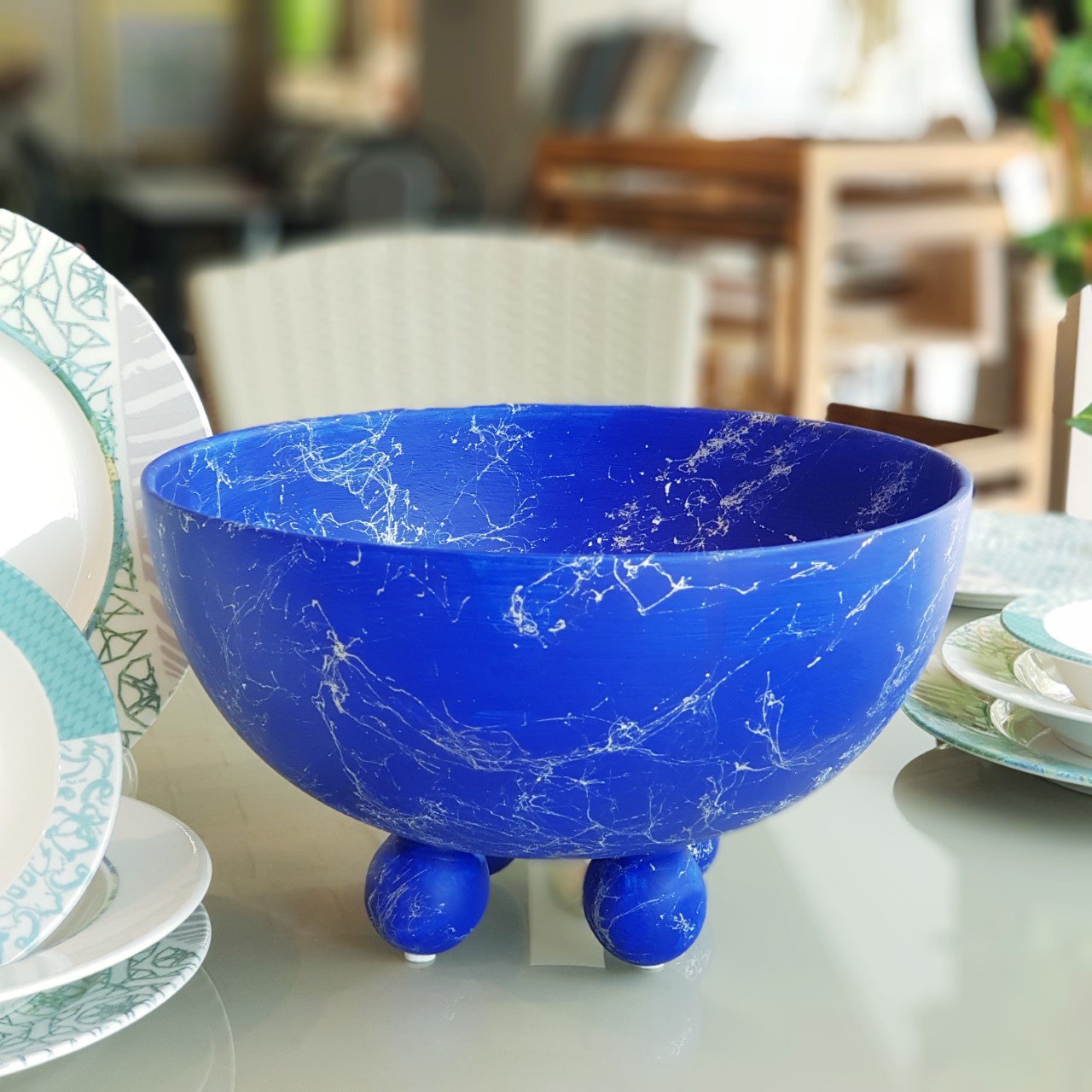 Avanos Antik Ayaklı Kase Büyük Boy Kobalt Mavi