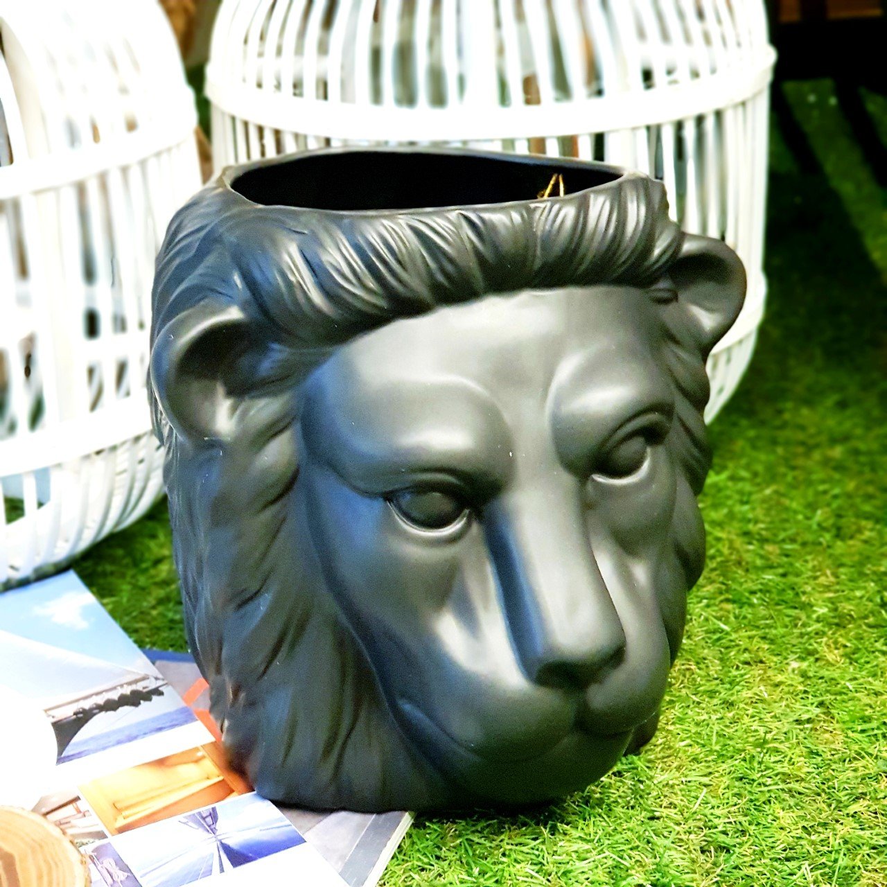 Aslan Figürlü Siyah Saksı, ince detayları ve eşsiz tasarımıyla dikkat çekmektedir. Aslanın asilliği ve duruşu saksıya en ince ayrıntısına kadar işlenmiştir. Ürün dekoratif olarak büyük bir zenginlik sunmaktadır. Tüm detaylarıyla da belirginliği arttırılmıştır. Mevcut tüm bitkileriniz için harika bir tercih olacaktır. Ürünü çiçeklerinizi koyabileceğiniz bir saksı olarak kullanıma uygun olduğu gibi tek başına bir dekor ürünü olarak da kullanıma da oldukça uygundur. Evinizde, ofisinizde, çalışma ve kişisel odalarınızda; kısaca tüm yaşam alanlarınızda kullanabilirsiniz.