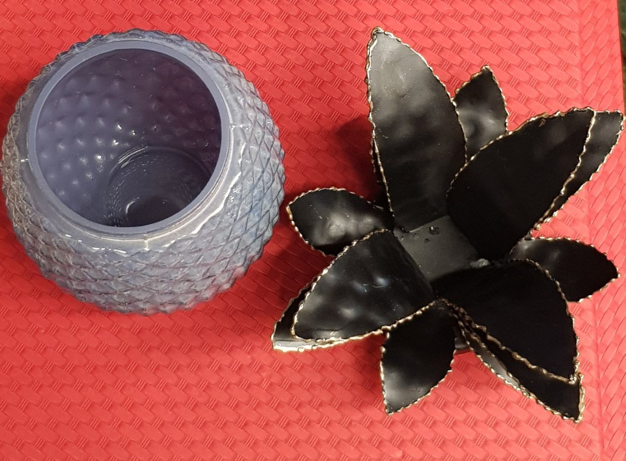 Cam ve metal malzemeden üretilmiştir.