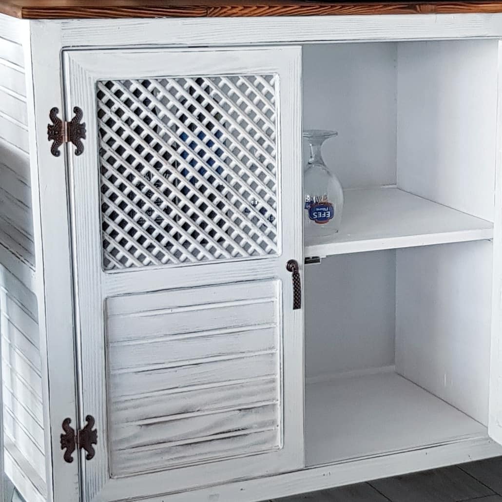 Kapaklarda dekoratif ahşap ızgara uygulaması yapılmıştır