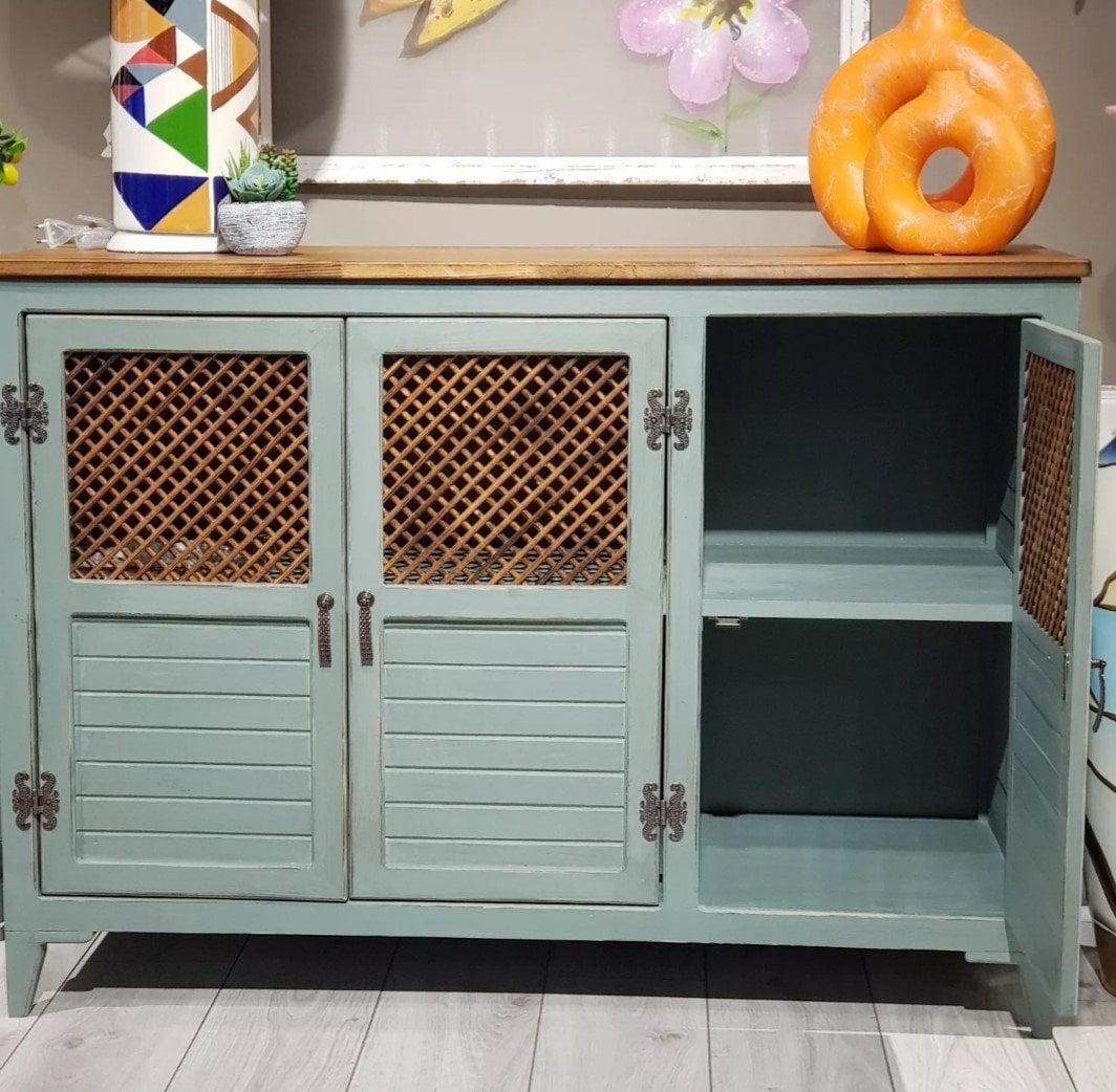 Kapaklarda dekoratif ahşap ızgara uygulaması yapılmıştır