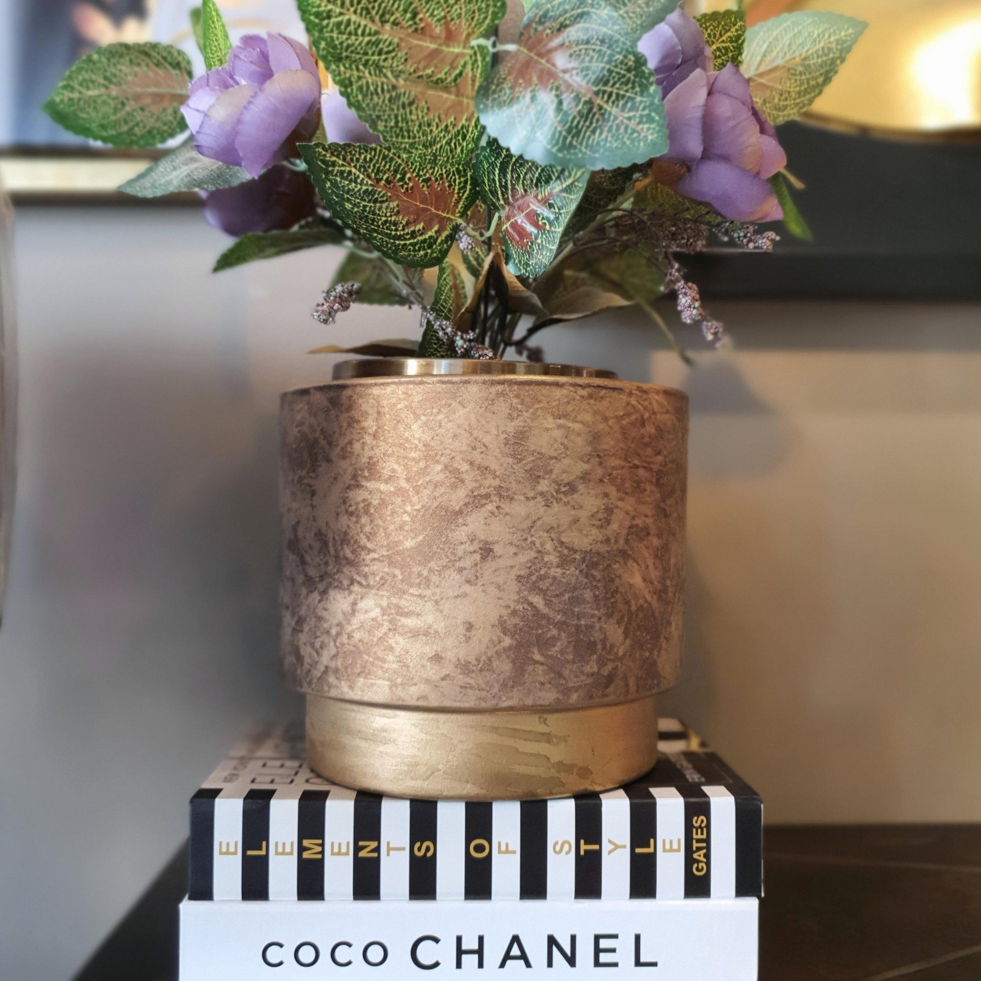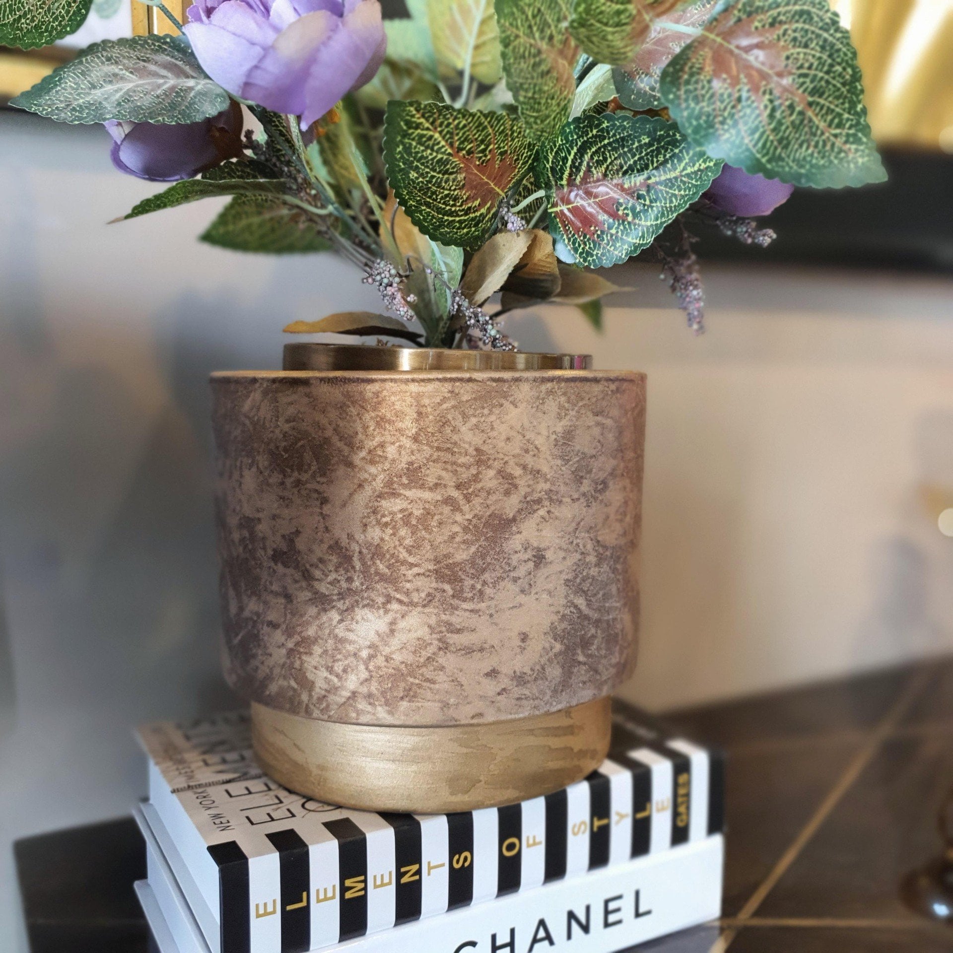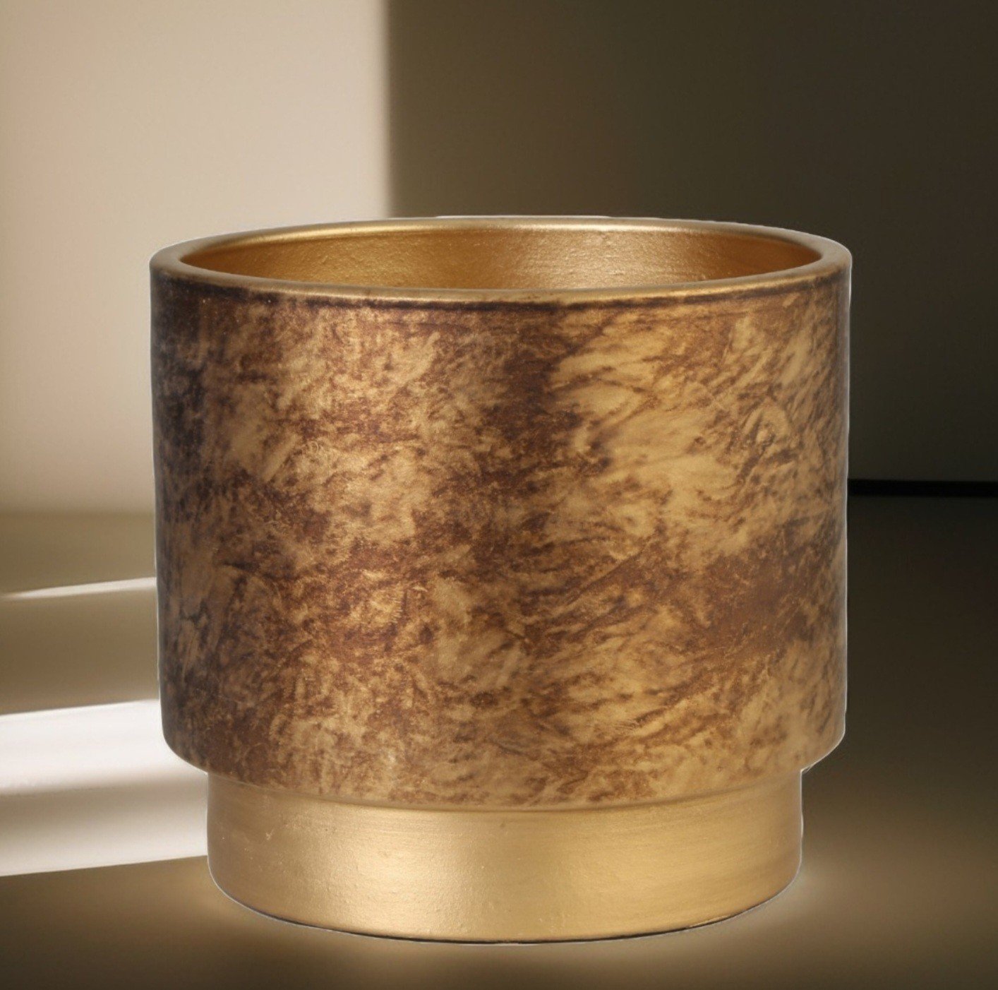 Vazmuz yüksek kaliteli seramik malzemeden yapılmıştır ve dayanıklı bir yapıya sahiptir. Gold renkli kaplama, vazonun zarafetini ve lüksünü vurgularken, detaylara verilen özen göz alıcı bir etki yaratır. Vazomuz orta büyüklükteki çiçekler veya yapay bitkiler için idealdir.