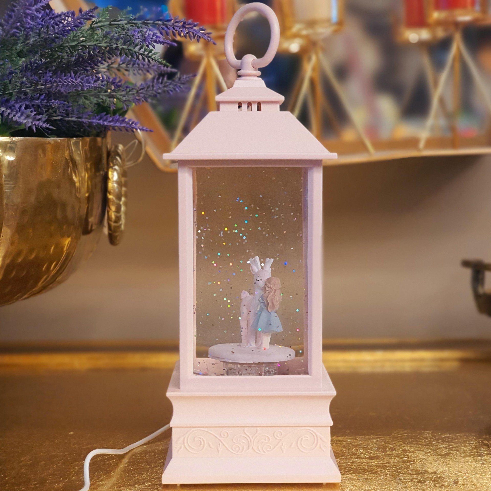 Deer And Girl Köşeli Müzikli Işıklı Fener