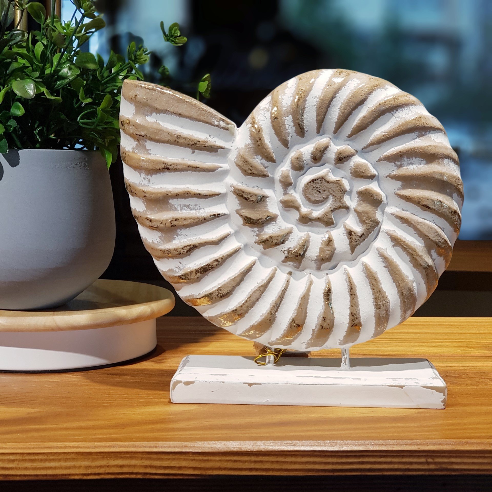 Kabuk model dekoratif ürünler ile dekora temanıza sahil serinliğini fısıldayın. Sahilde ki sahil buluntularından ilham alınarak hazırlanan bu sanatsal oymalar ahşap malzemeden üretilmiştir. Göz alıcı ürünlerimiz modern kumsal şıklığın ruhunu kucaklarken dekore etmek istediğiniz alanda görsel bir şölen yaratabilirsiniz.
