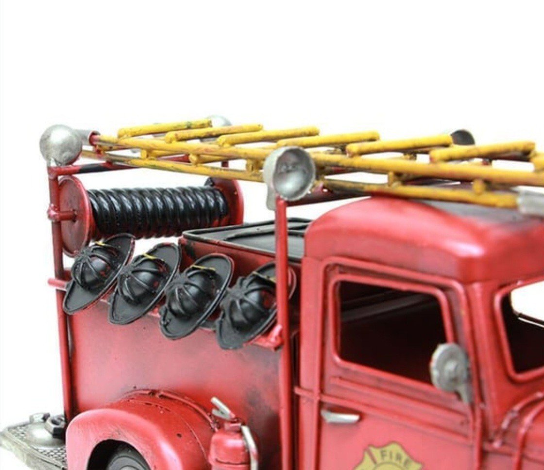 Modern tasarımıyla dikkat çeken metal itfaiye araba, evinizin veya ofisinizin dekorasyonuna şık bir dokunuş ekler. - Tek parça halinde gelen bu ürün, pratik kullanım sunar - Dayanıklı metal malzemesi ile uzun ömürlü kullanım vaat eder ve sık kullanıma karşı direnç gösterir.Tamamı metal malzemeden el yapımı olarak üretilmiş ve boyanmıştır. Vintage tarz olup eskitme işlemi uygulanmıştır. Dekoratif üründür oyuncak değil.