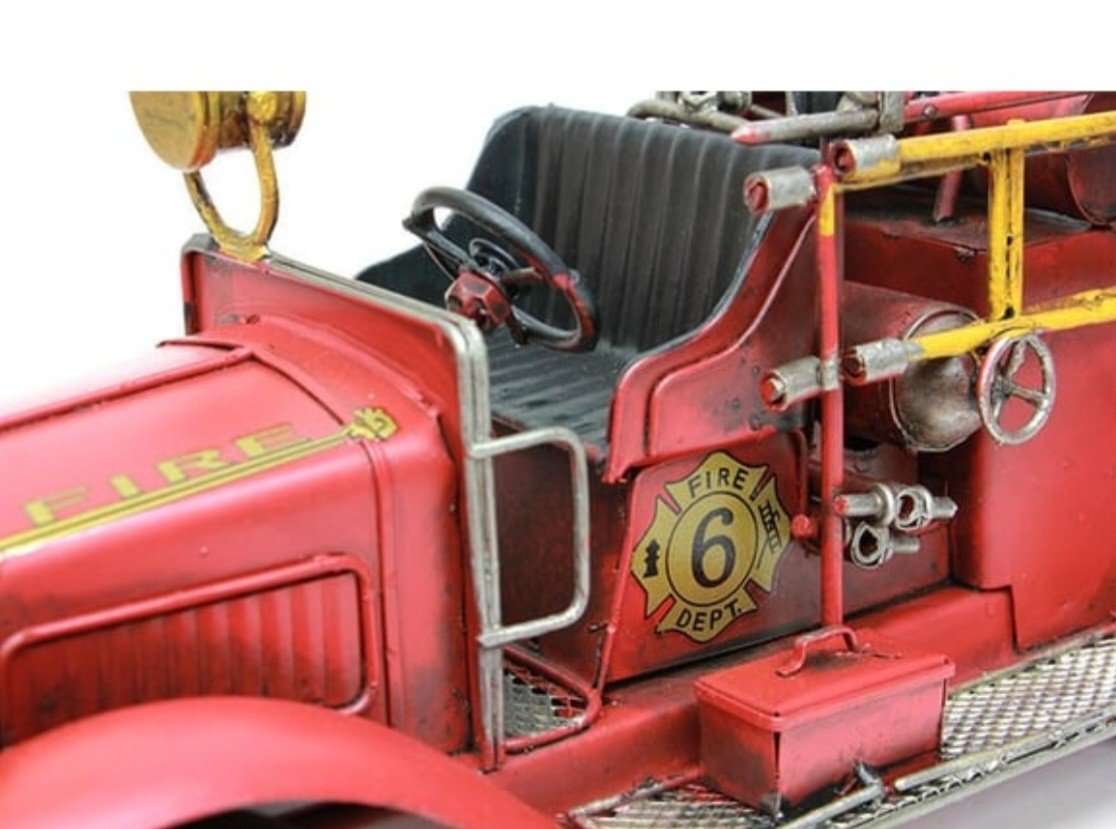 Modern tasarımıyla dikkat çeken metal itfaiye araba, evinizin veya ofisinizin dekorasyonuna şık bir dokunuş ekler. Tek parça halinde gelen bu ürün, pratik kullanım sunar. Dayanıklı metal malzemesi ile uzun ömürlü kullanım vaat eder ve sık kullanıma karşı direnç gösterir.Tamamı metal malzemeden el yapımı olarak üretilmiş ve boyanmıştır. Vintage tarz olup eskitme işlemi uygulanmıştır. Dekoratif üründür oyuncak değil.