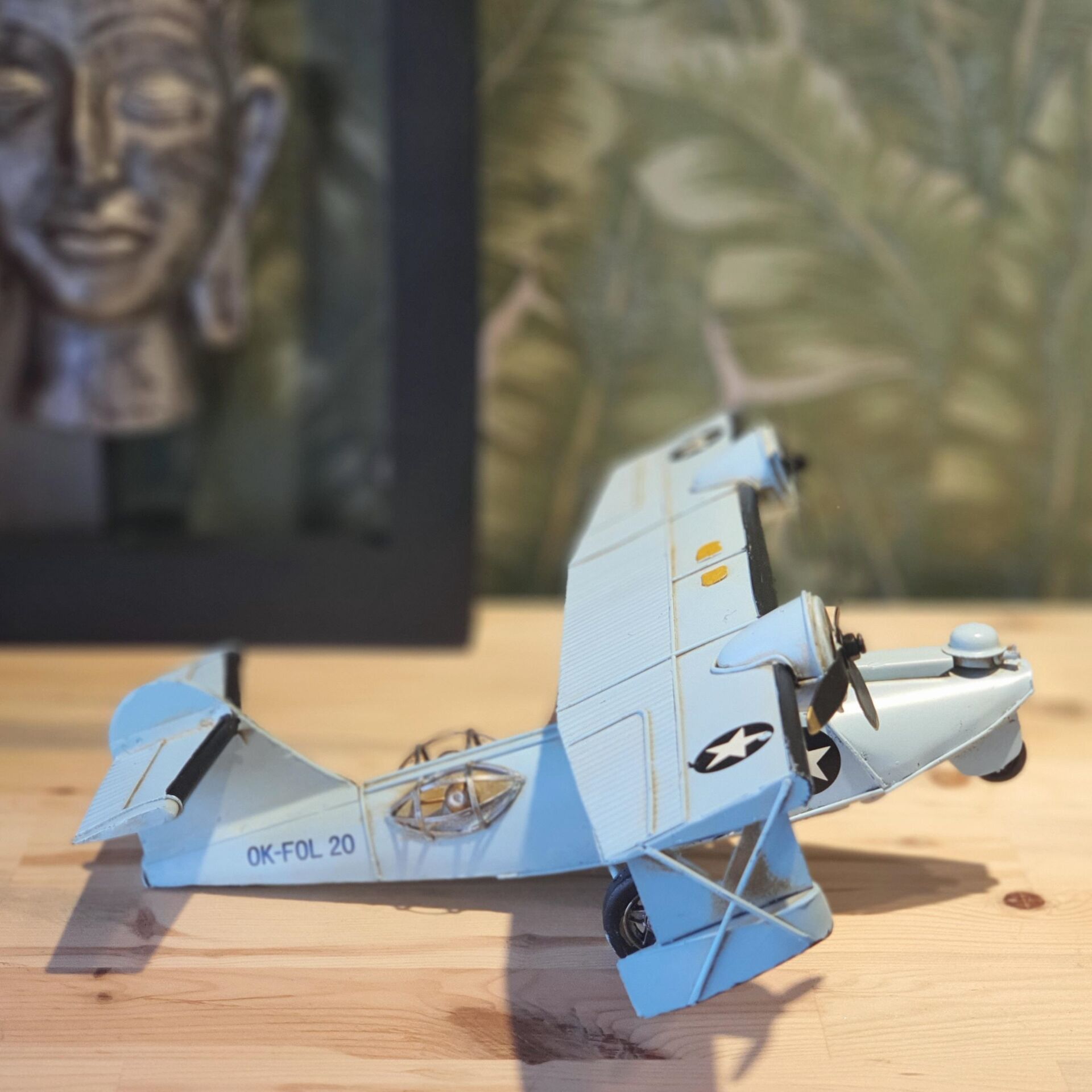 Nakliye uçağı modelidir. Vintage tarz olup eskitme işlemi uygulanmıştır. Tamamı metal malzemeden el yapımı ve el boyaması olarak üretilip sizler için hazırlanmıştır.Oyuncak değildir dekorasyon ürünüdür. Uçak severlerin tercihi olarak koleksiyonlarına ekleyebilecekleri özel tasarım ürün modelidir.