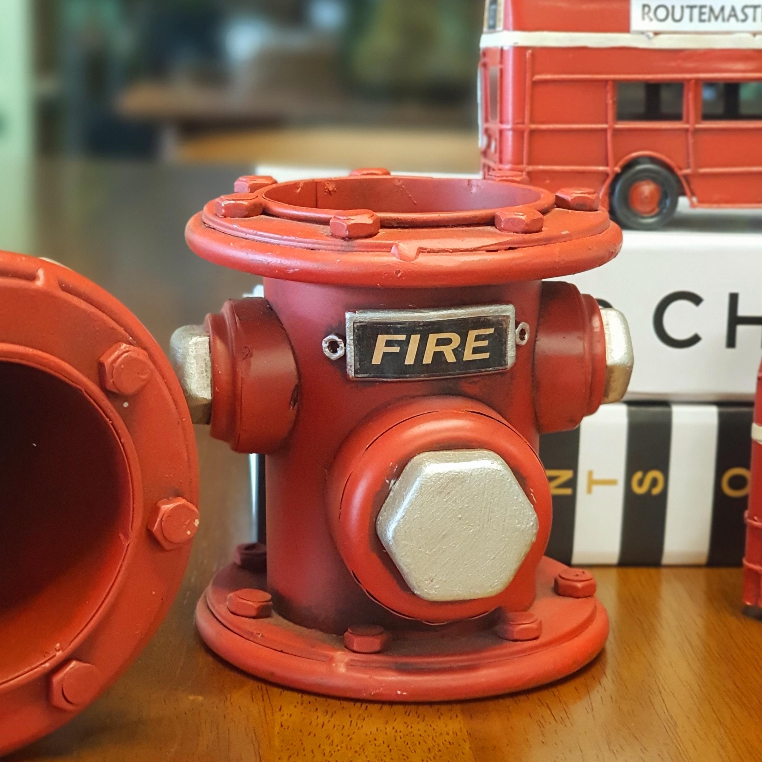 Kalemlik yangın vanası modelidir. Vintage tarz olup eskitme işlemi uygulanmıştır. Tamamı metal malzemeden el yapımı ve el boyaması olarak üretilmiştir. Çerçeve özelliği mevcuttur. Dekoratif amaçlı kullanılır. Oyuncak değildir.