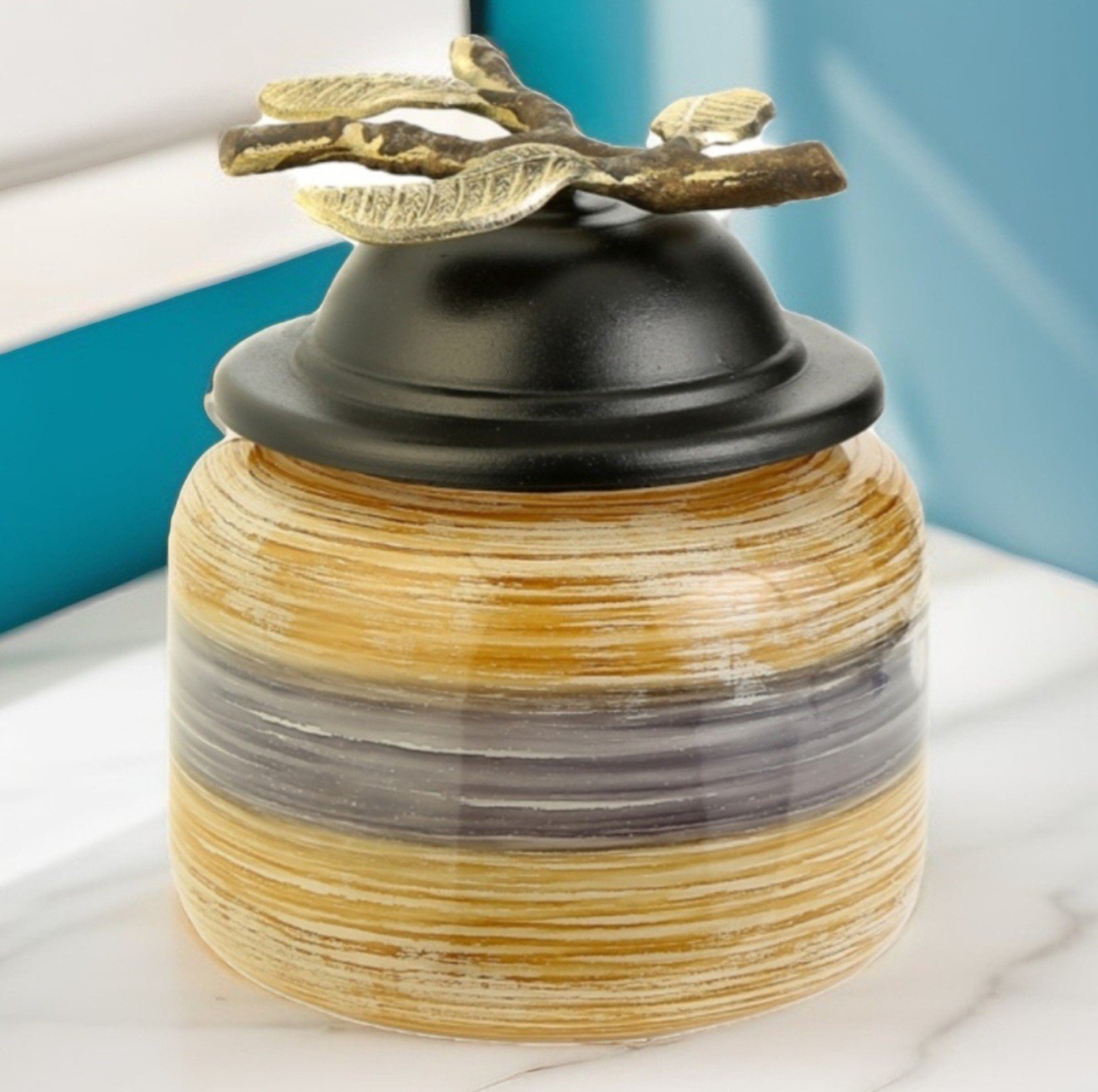 Fırçalı Desen Cam Kapaklı Vazo 18cm