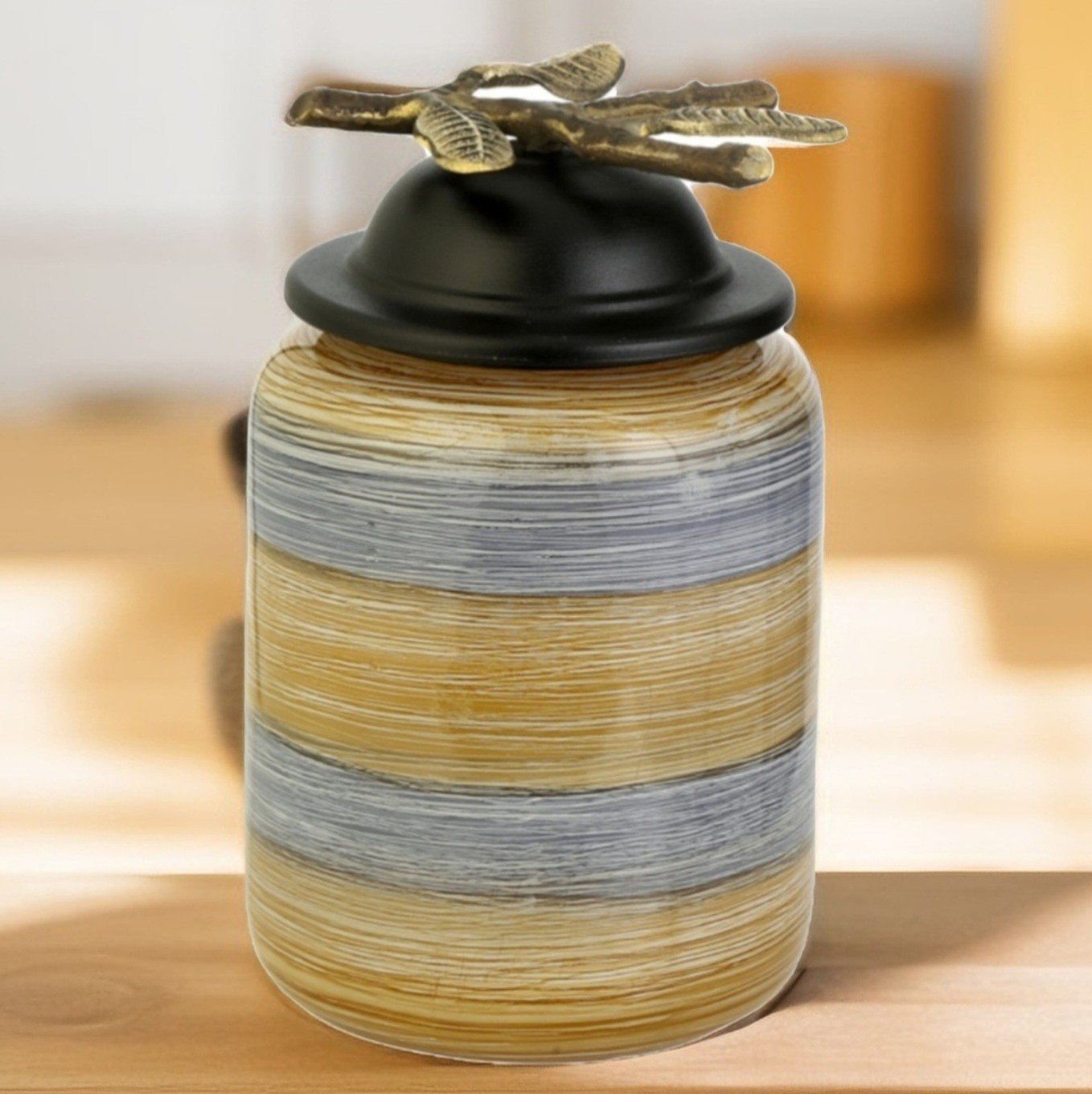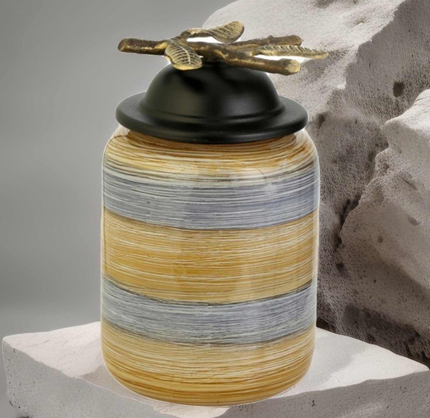 Fırçalı Desen Cam Kapaklı Vazo 25cm