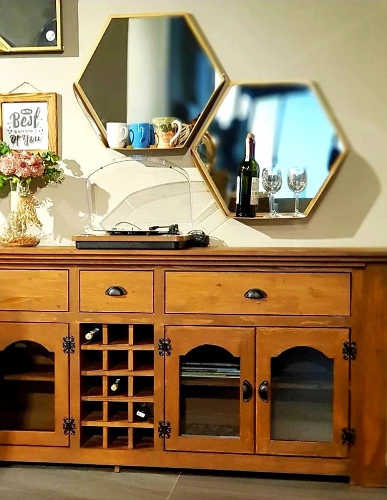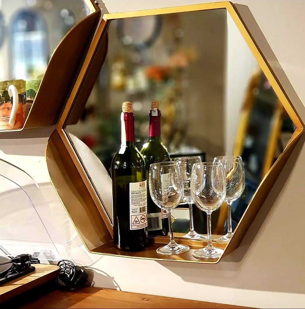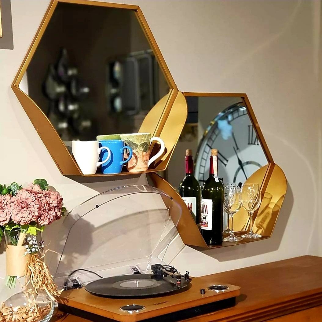 Gold Altıgen Raflı 2'Li Duvar Aynası