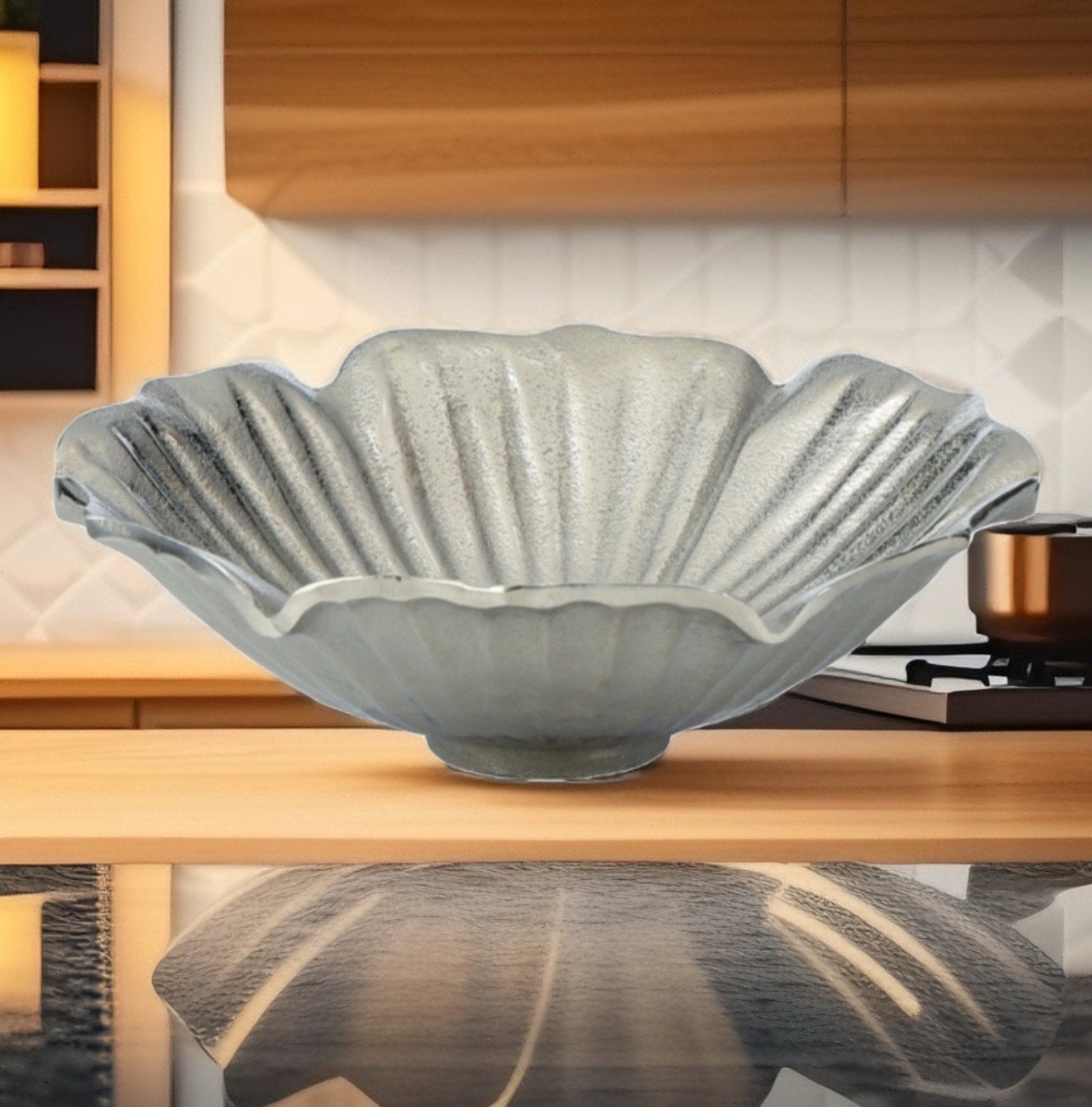 En zarif gümüş rengi salon aksesuarlarımızı, evinizin dekorasyon seviyesini yükseltmek için tercih edebilirsiniz. Modeli ve görüntüsü ile özel günlerinizde gümüş renk gondol arayanlar için oldukça ideal bir üründür. İkramlarınızda sunumlarınızda da misafirlerinize göz alıcı bir şıklıkla beraber unutulmaz sofralar hazırlayabilirsiniz.Sehpa üzeri masa üzeri dekoratif bir kase olarak da kullanım sağlayabilirsiniz.