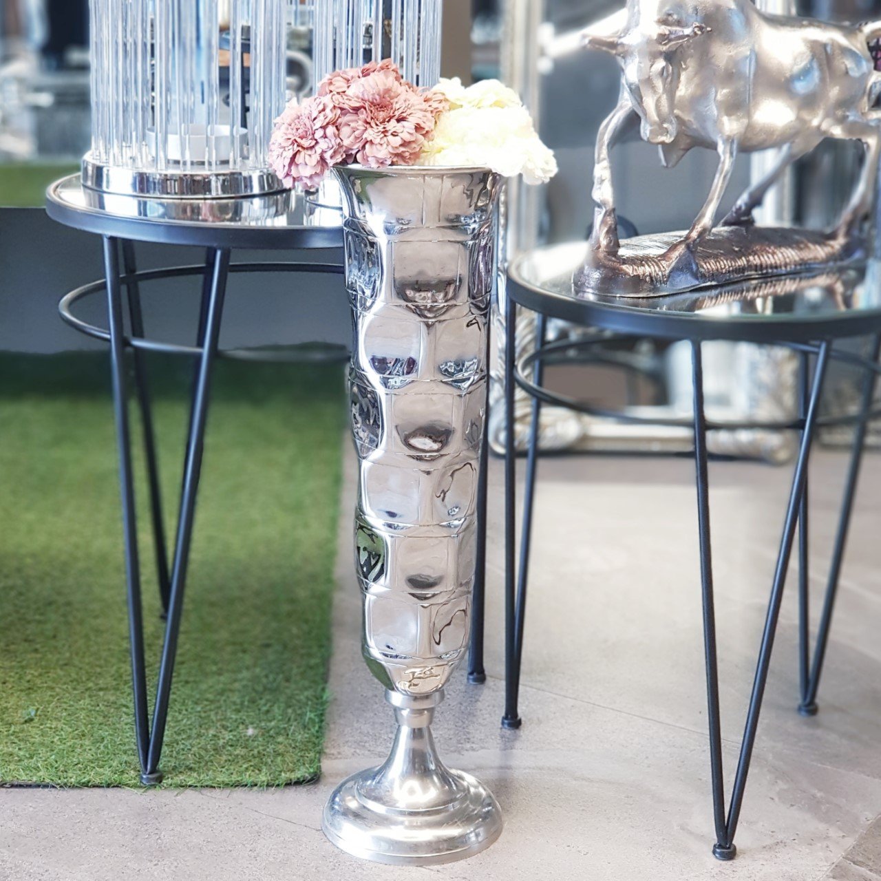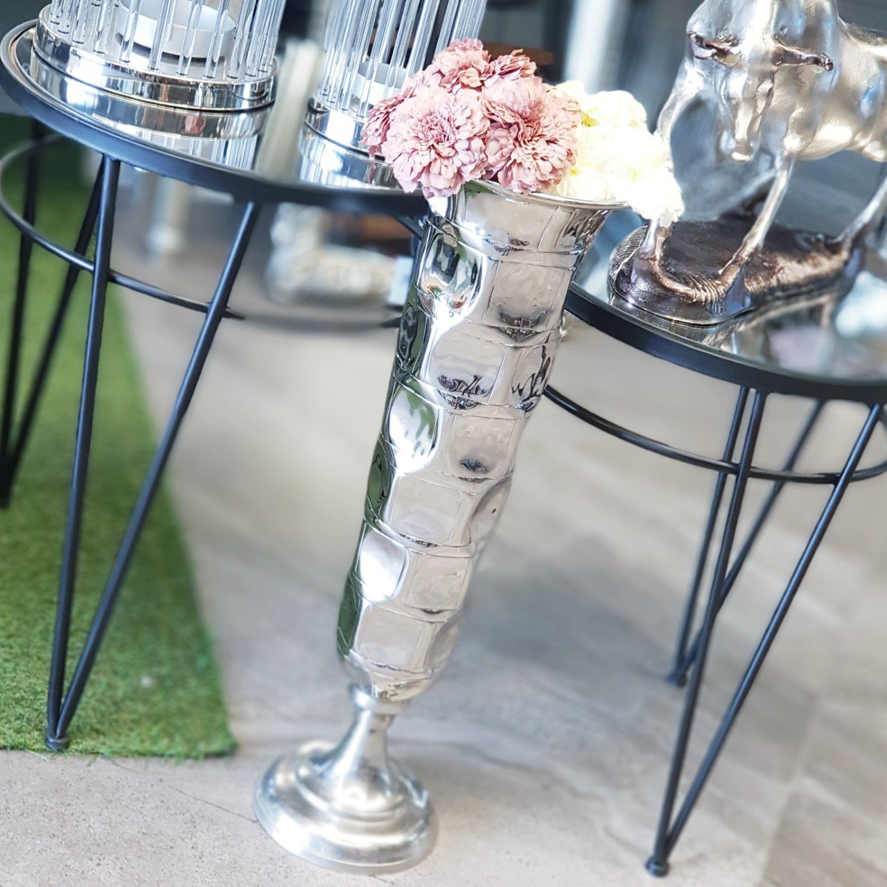Metal vazolar özellikle yer aksesuarı olarak kullanılan uzun vazolar sade ama havalı görünümü ile tüm kullanıcıların favorisi haline gelmeye aday ürünlerdir. Kusursuz kompozisyonların ortaya çıkmasına olanak sağlayan ve dekorasyon fikirleri içinde kendine rahatlıkla yer bulan vazomuz bulunduğu her ortamda etkileyici bir görünüme sahiptir. Gümüşün ışıltısını keşfetmeye doyamayacaksınız