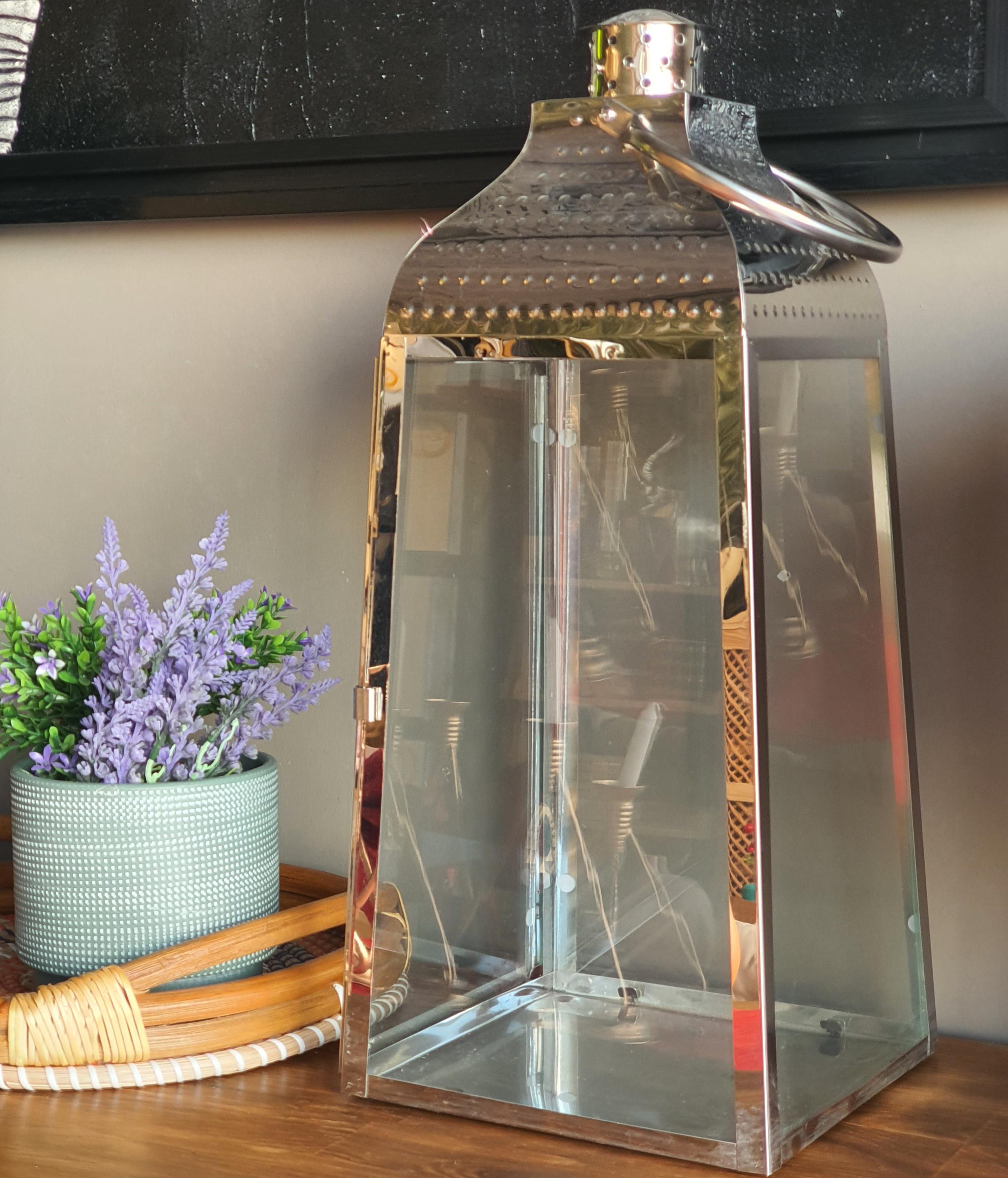 Gümüş Renk Metal Camlı Fener 63cm