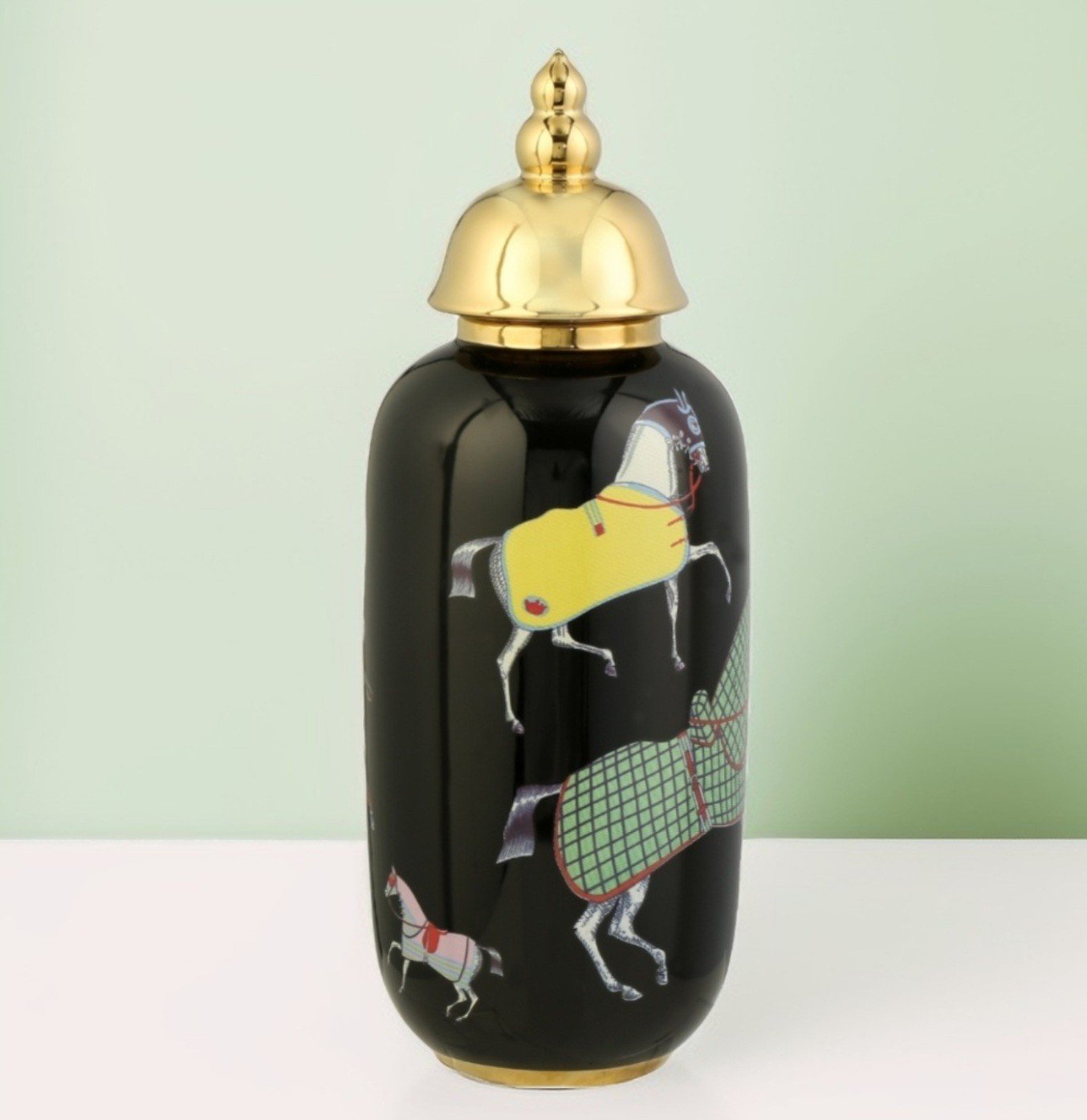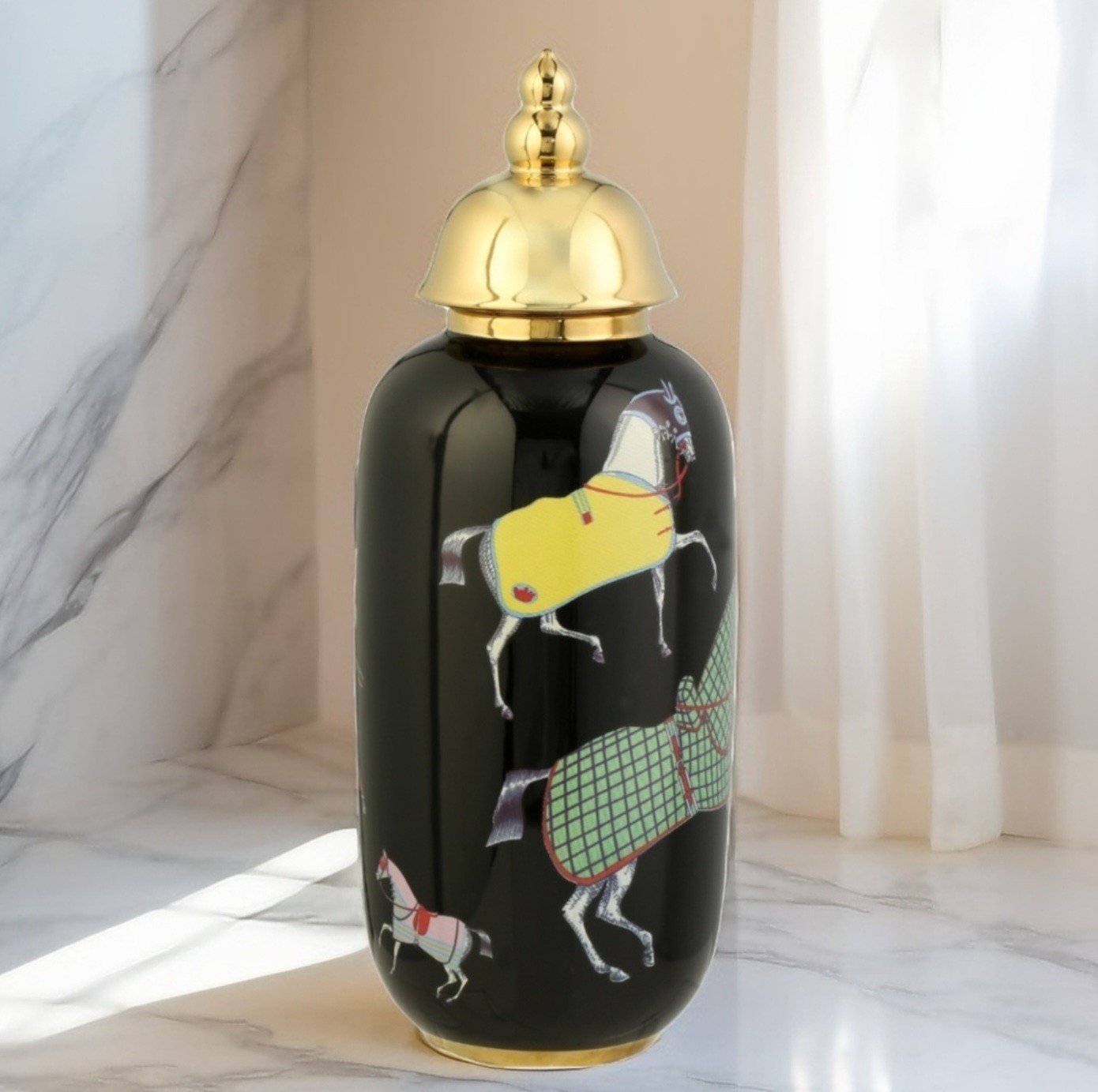 Horse Elips Vazo Siyah Gold, ev dekorasyonuna şıklık ve zarafet katacak benzersiz bir tasarıma sahip olan bir üründür. Bu özel vazo, modern ve klasik tarzları bir araya getirerek, herhangi bir mekanda dikkat çekici bir detay oluşturur. Siyah ve gold renginin kontrastı, vazo üzerinde benzersiz bir görsel etki yaratırken, zarif elips şekli de ürüne sofistike bir dokunuş katmaktadır.