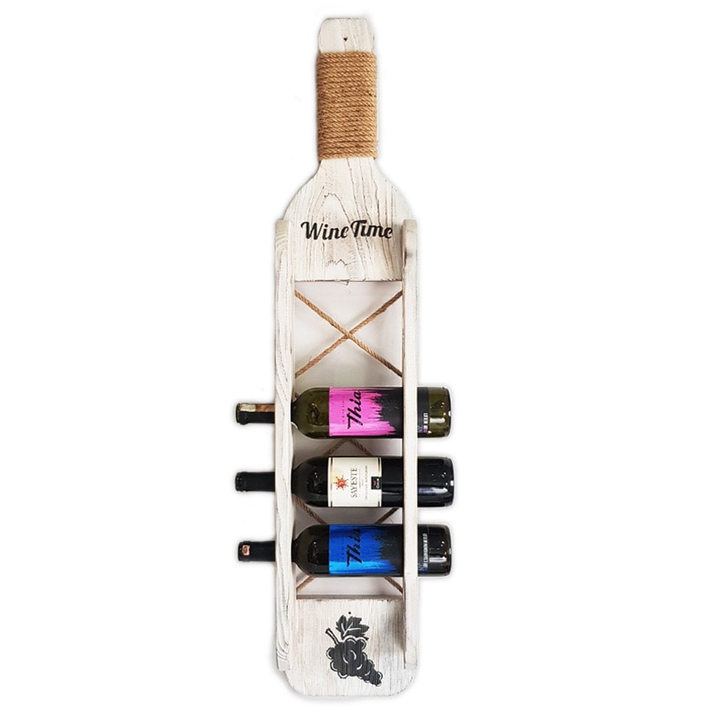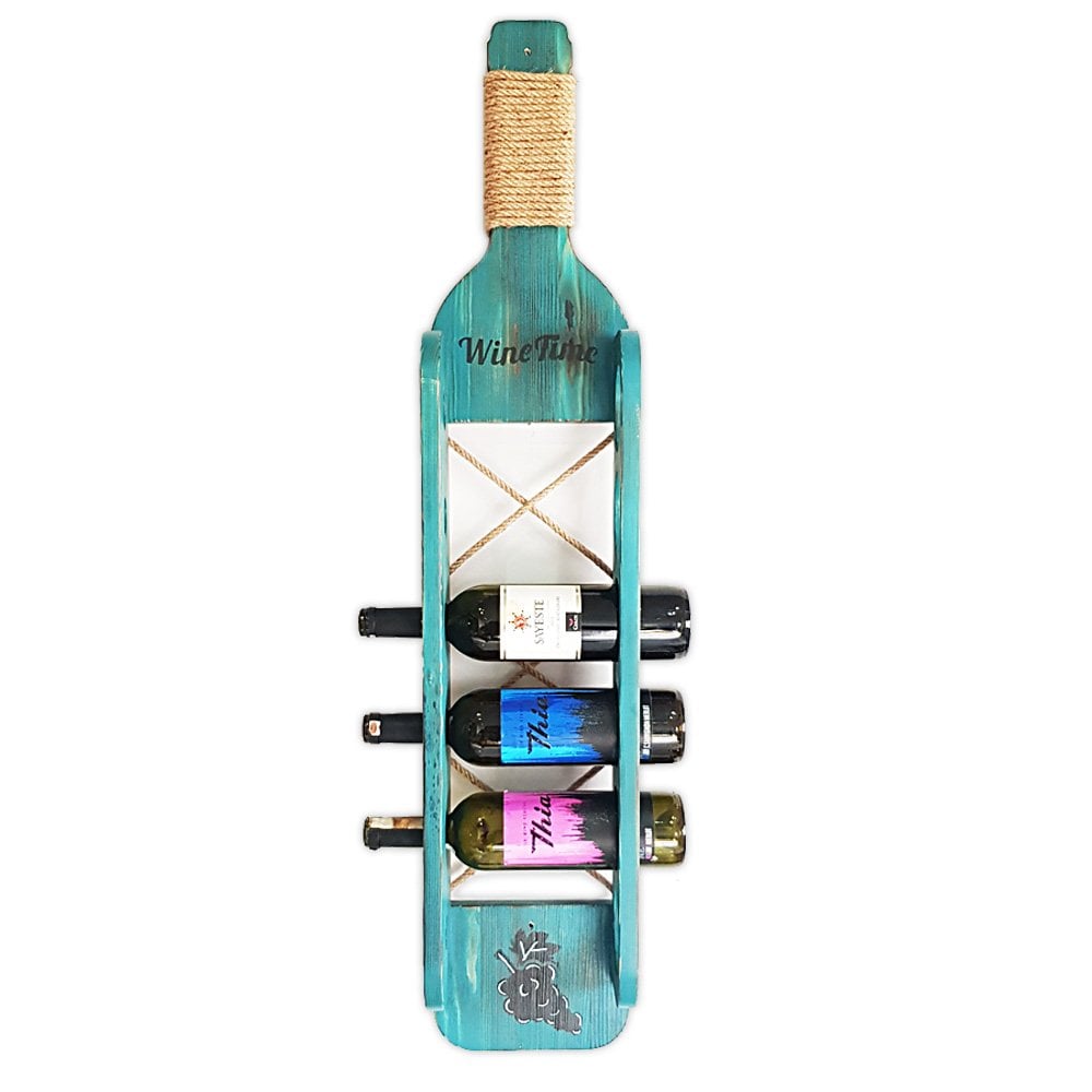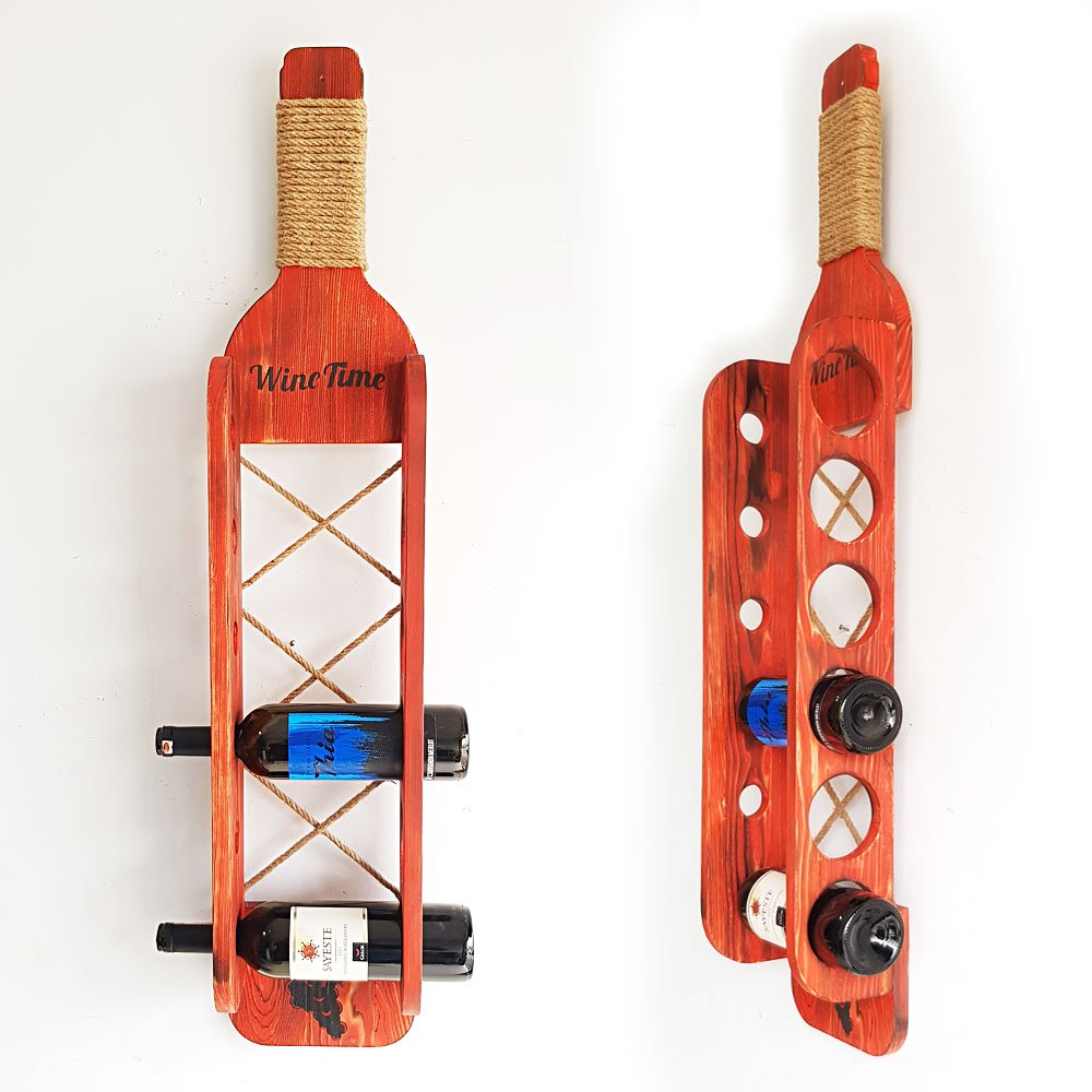 Şarap şişesi görünümünde eskitme masif ahşaptan üretildi.