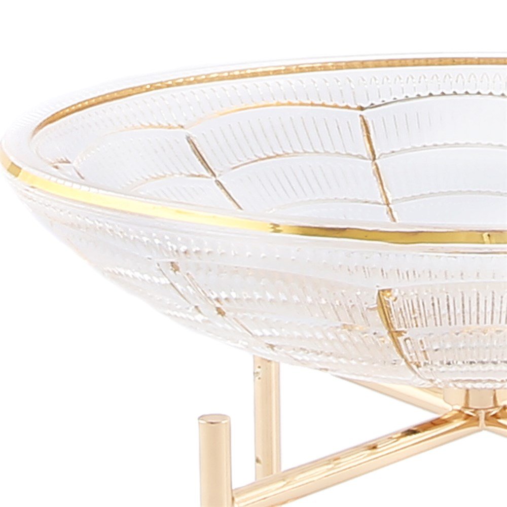 Kristal Camlı Sunum Dekor Kase Gold