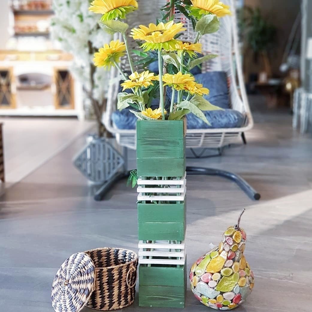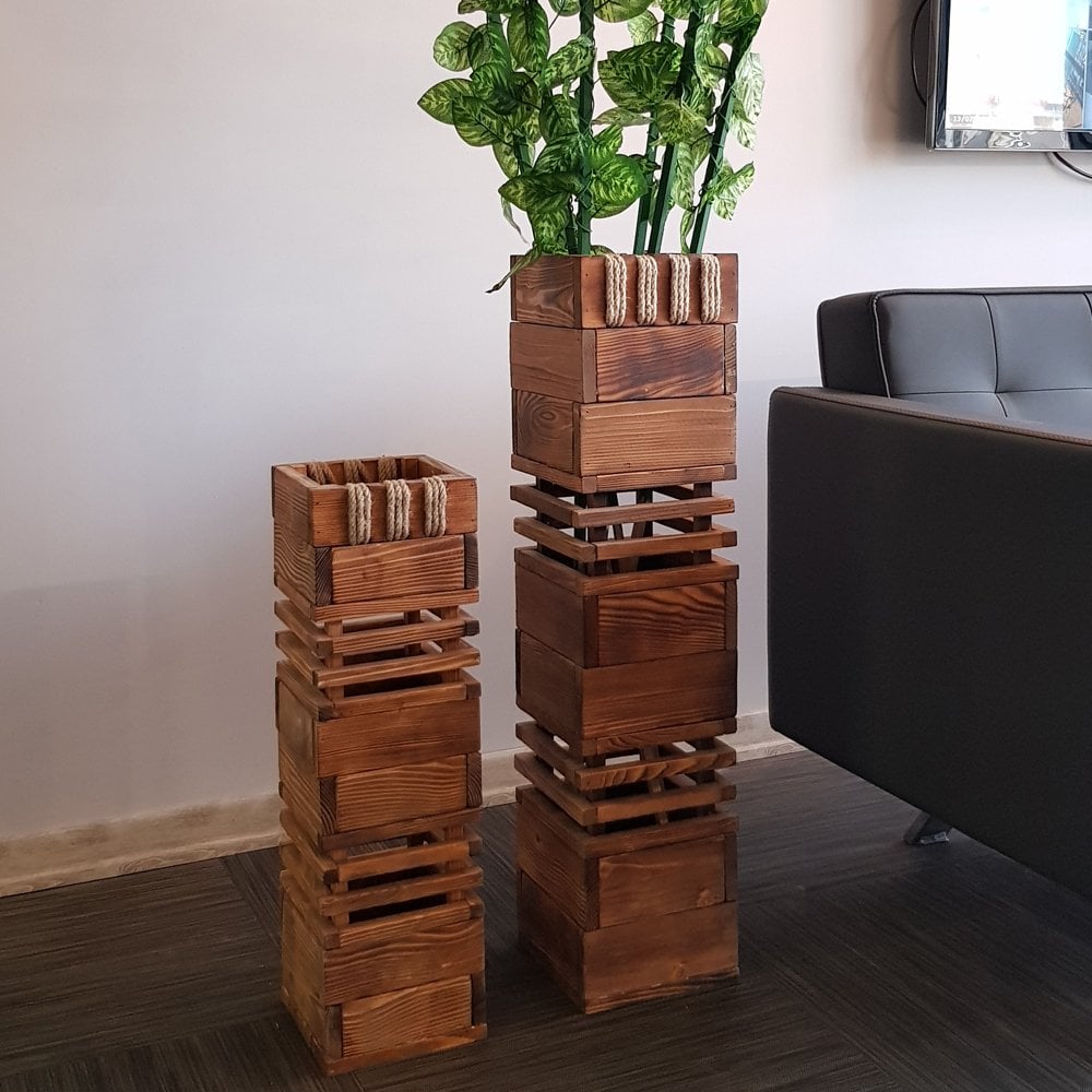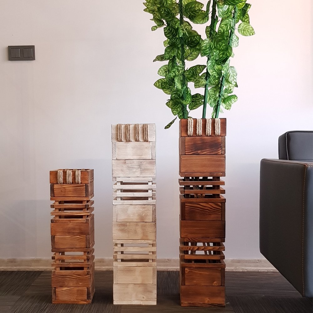 Kule Masif Ahşap Vazo Büyük Boy Naturel