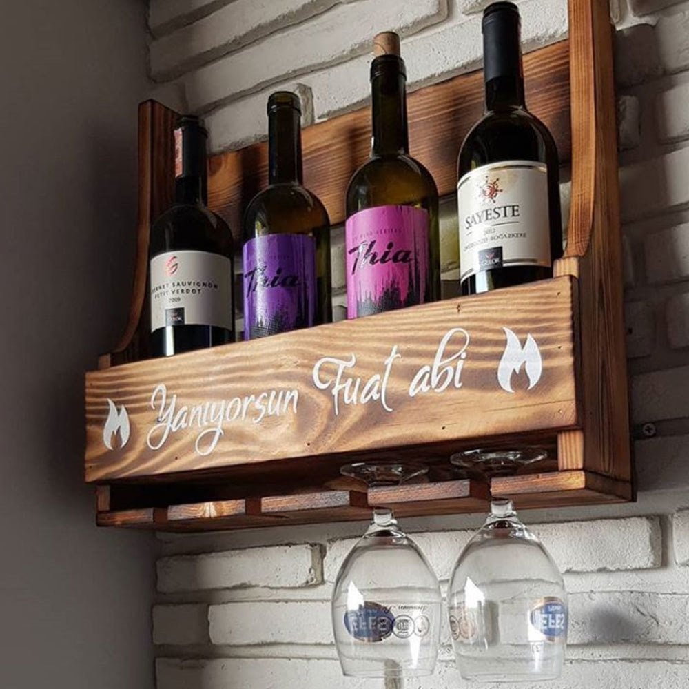 Eskitme masif ahşaptan üretildi. 4 adet şarap alır.