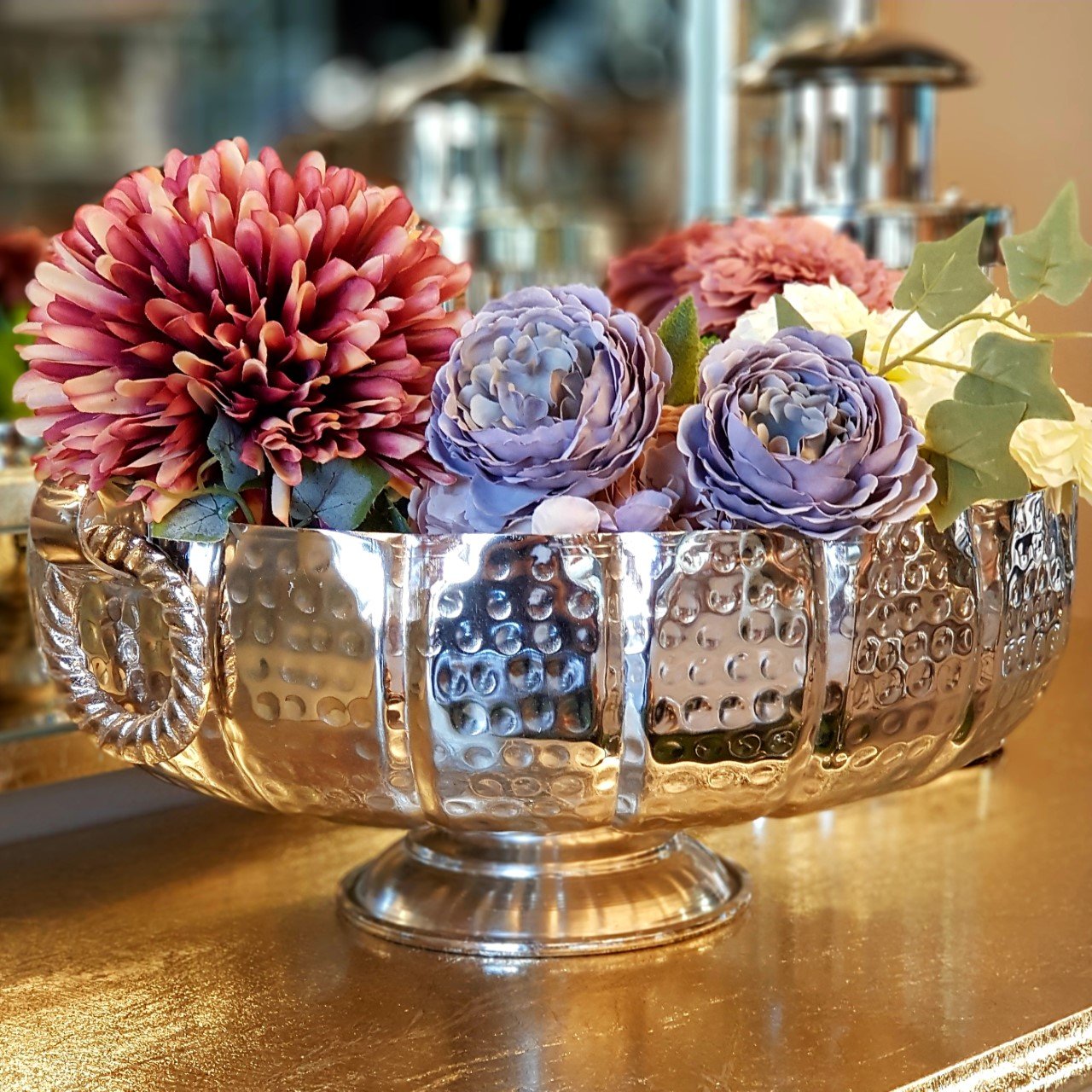 Yaşam alanlarınızda lüks bir dokunuşta bulunacak olan gümüş tabağımız zarifliği ve şıklığı buluşturan sehpa konsol veya masa üzerinde kullanabileceğiniz çok amaçlı harika detaylara sahip ürünümüzü çiçeklerle süsleyebilir veya meyve tabağı olarak kullanabilirsiniz. Gümüşün geçmeyen modası ve her daim trend olarak gündem de kalması tamamlayıcı özelliğini de beraberinde getiriyor.