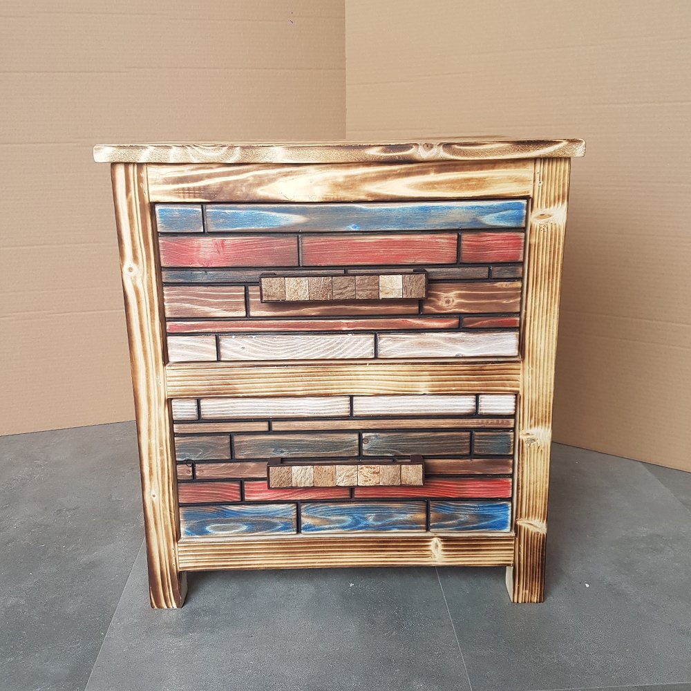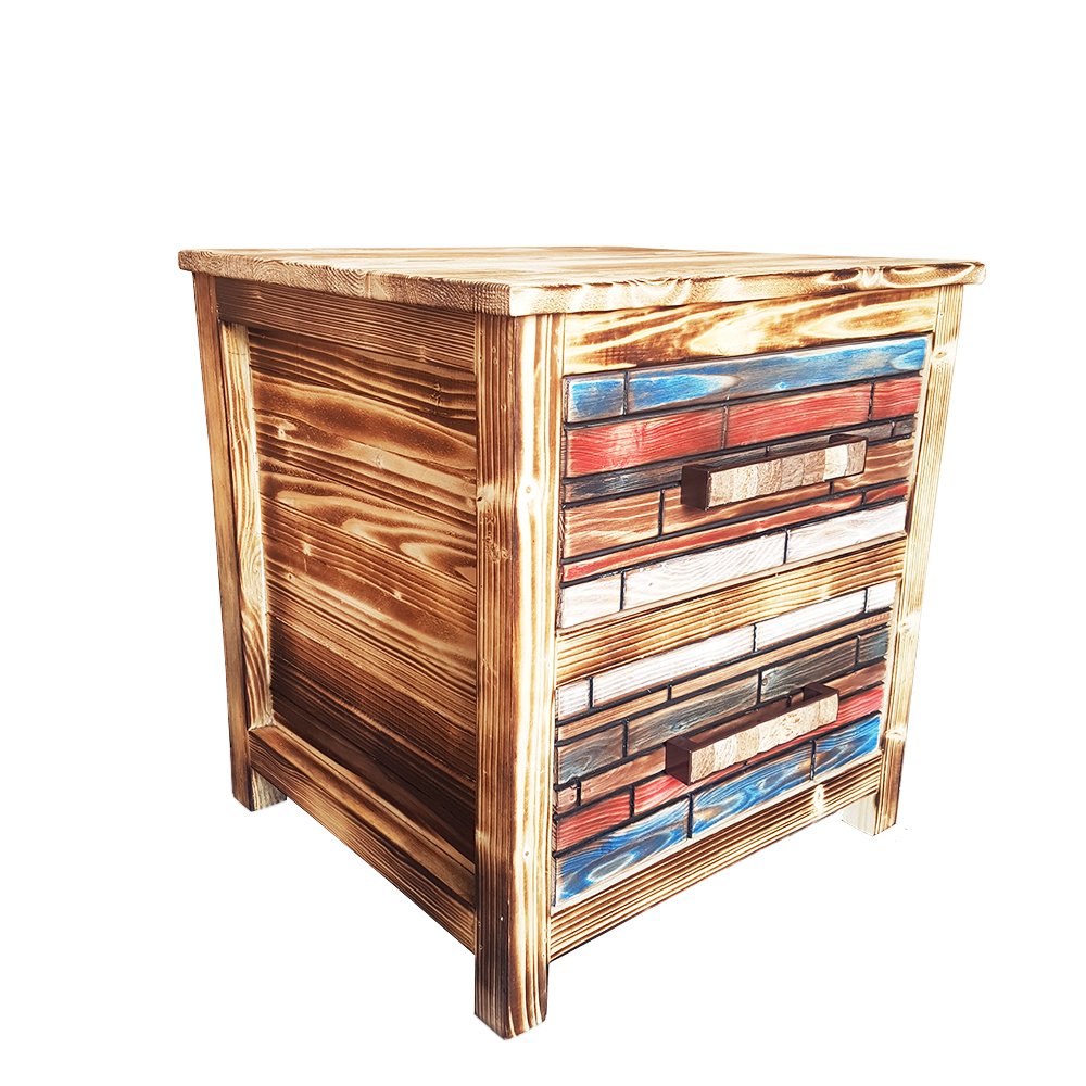 Ahşap koruyucu ve mat vernik uygulanmış ürünümüzün çekmece yüzeyleri su bazlı boya ile boyanıp eskitilerek elde edilmiştir.Kullanmak istediğiniz mekanda tasarım etkisinin ve sıcaklığının oldukça fazla olacağını söyleyebiliriz. İstenilen ebatta üretimi mümkündür.