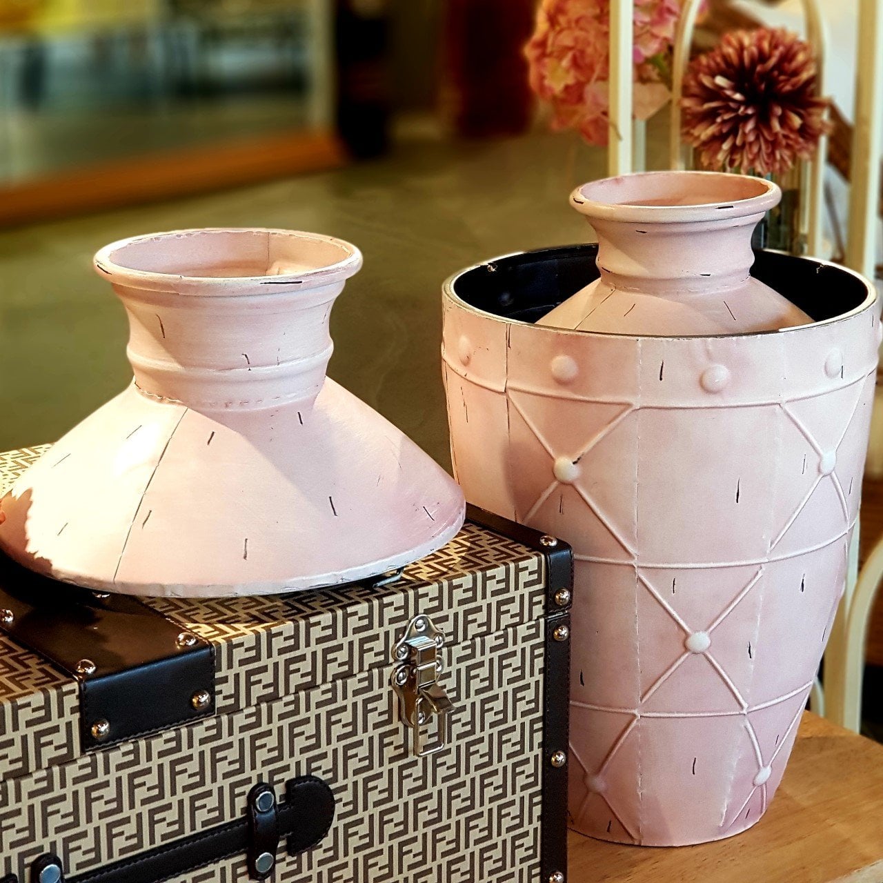 Pembe rengin özgün tasarımı ile fark yaratacağınız metal küp model vazomuz ikili olması ile beraber iç içe geçme özelliğine sahiptir. Geniş alanlarınız için yer vazosu olarak kullanabilirsiniz. Bulunduğu ortamda ki şık ve zarif görüntüsü etkileyici yapısı ile vazgeçilmez dekorasyon ürünlerinizden biri olacak.