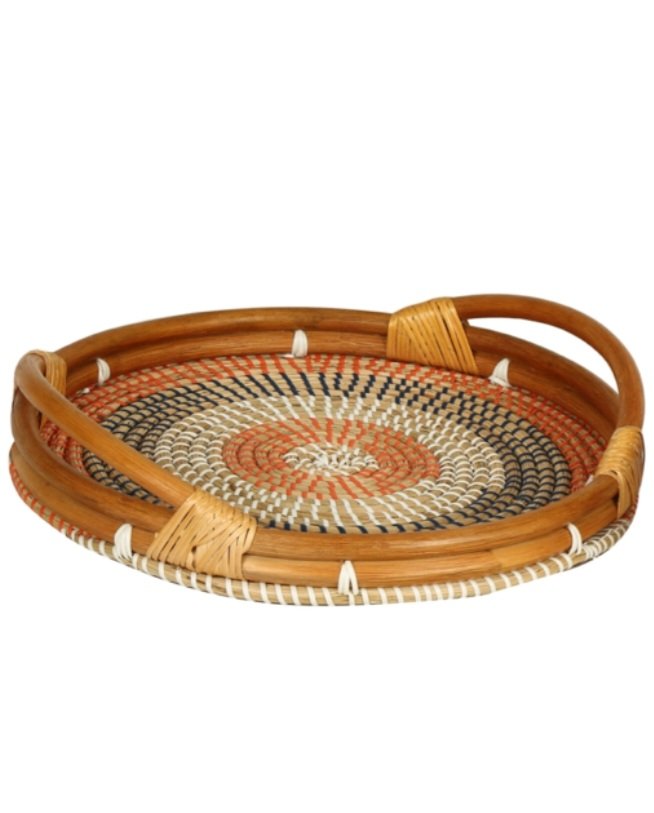 Renkli Rattan Ahşap kulplu Tepsi Küçük Boy