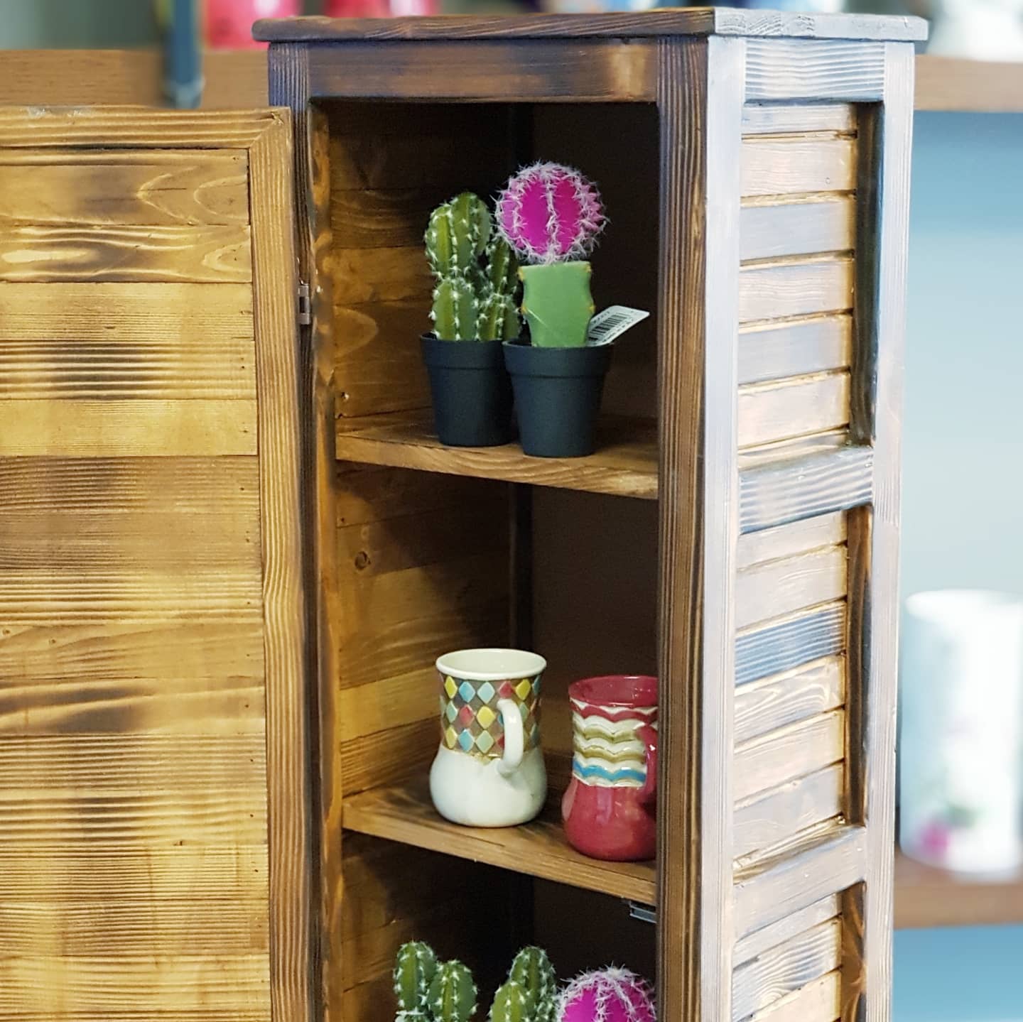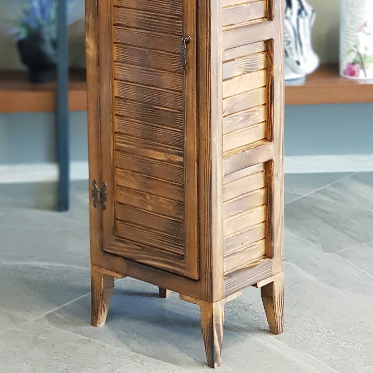 Ahşap gövdenin ve rafların tamamı fırınlanmış ve eskitilmiş gerçek ağaçtır.