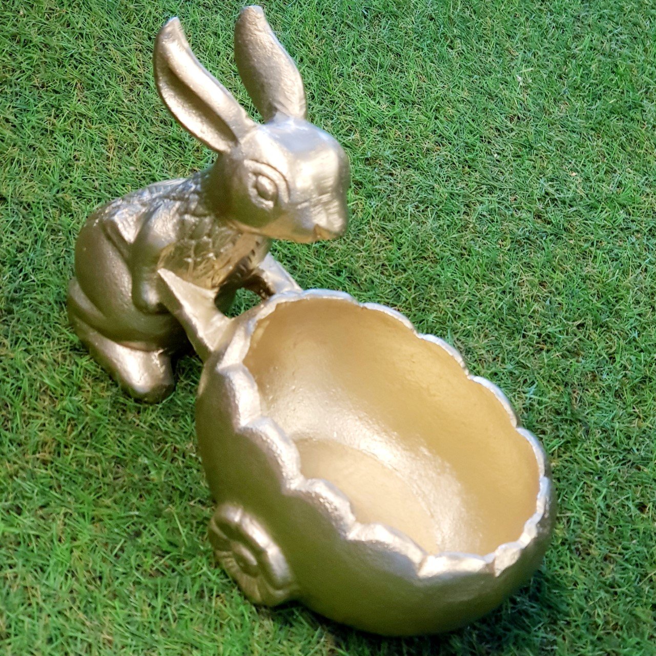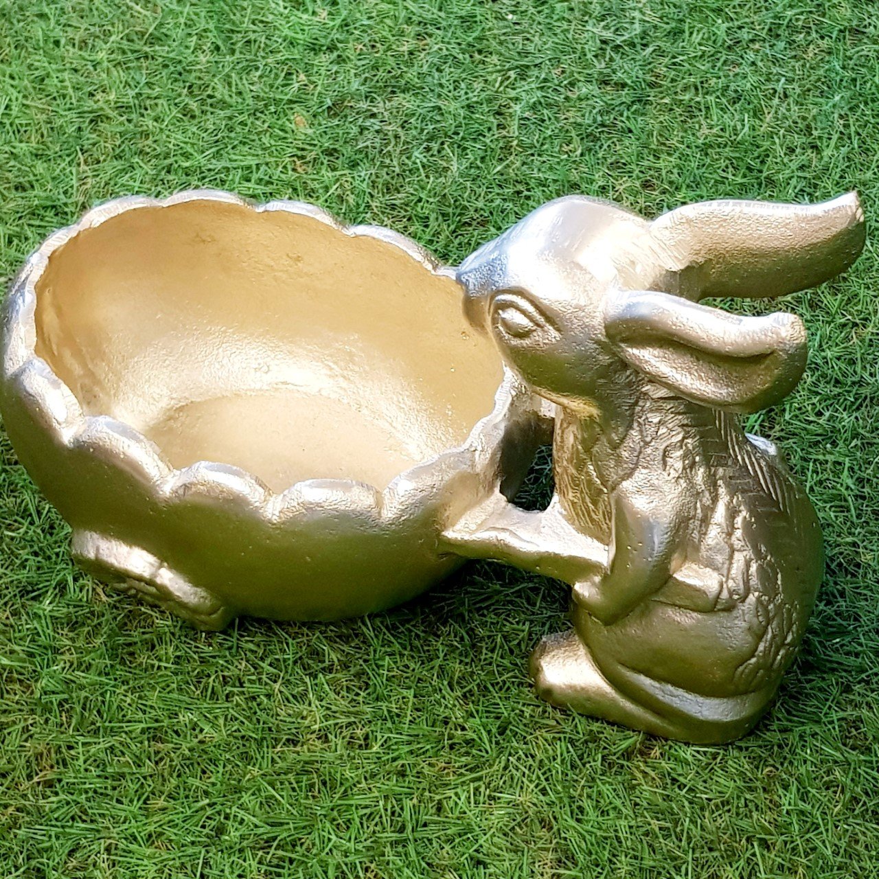 Metal malzemeden üretilen iki ayağı üzerinde duran ve el arabası taşıyan sevimli tavşan dostumuz çok amaçlı dekorasyon ürünü olarak kullanıma hazır. Dekoratif bir saksı sunumlarınız için keyifli bir ikramlık veya dresuar üzerinde anahtarlık olarak kullanabilirsiniz. Gold rengin ışıl ışıl parlayan görüntüsü sade dekor severler içinde ideal bir görüntü.