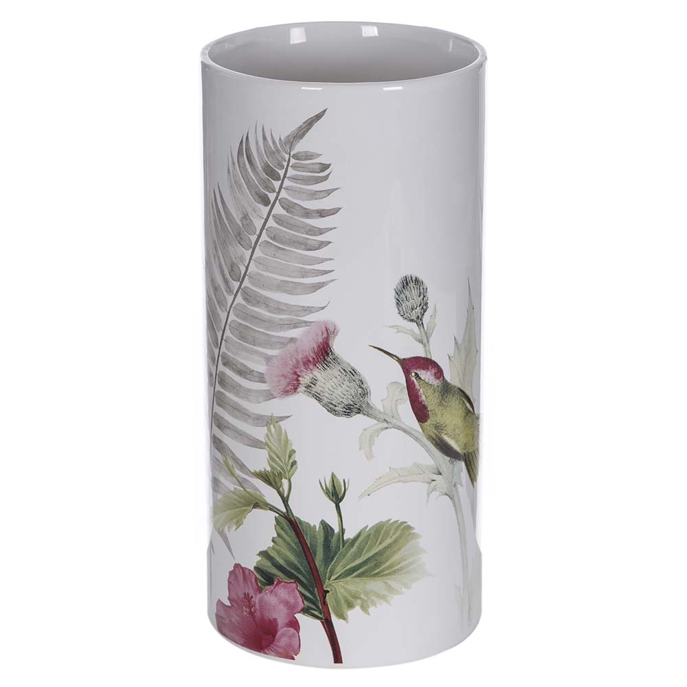 Tropikal Desenli Beyaz Vazo Küçük Boy