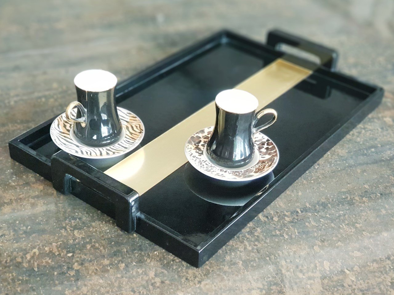 Vintage Dikdörtgen Tepsi Siyah