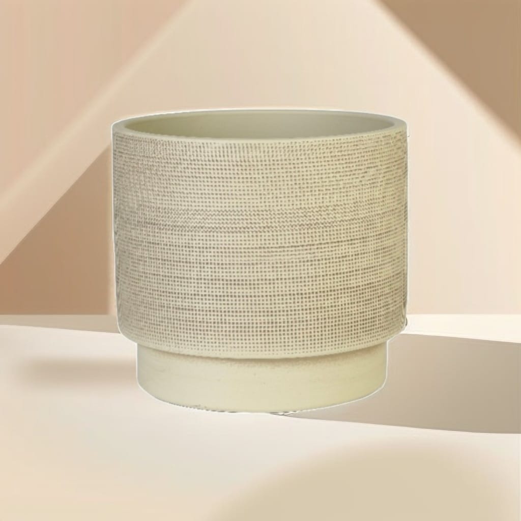 Waffle Seramik Vazo Bej Orta Boy 15cm