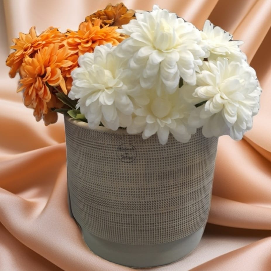 Waffle Seramik Vazo Bej Büyük Boy 22cm