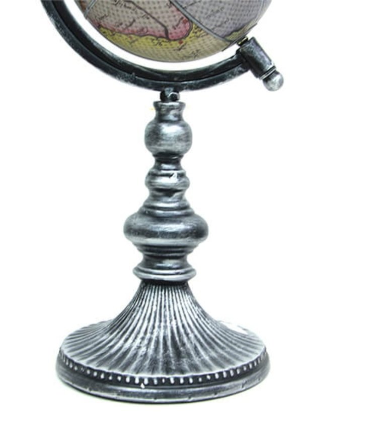 Tamamı metal malzemeden üretilmiştir. Vintage tarz olup eskitme işlemi uygulanmıştır. Yerküre suni deri ile kaplıdır.