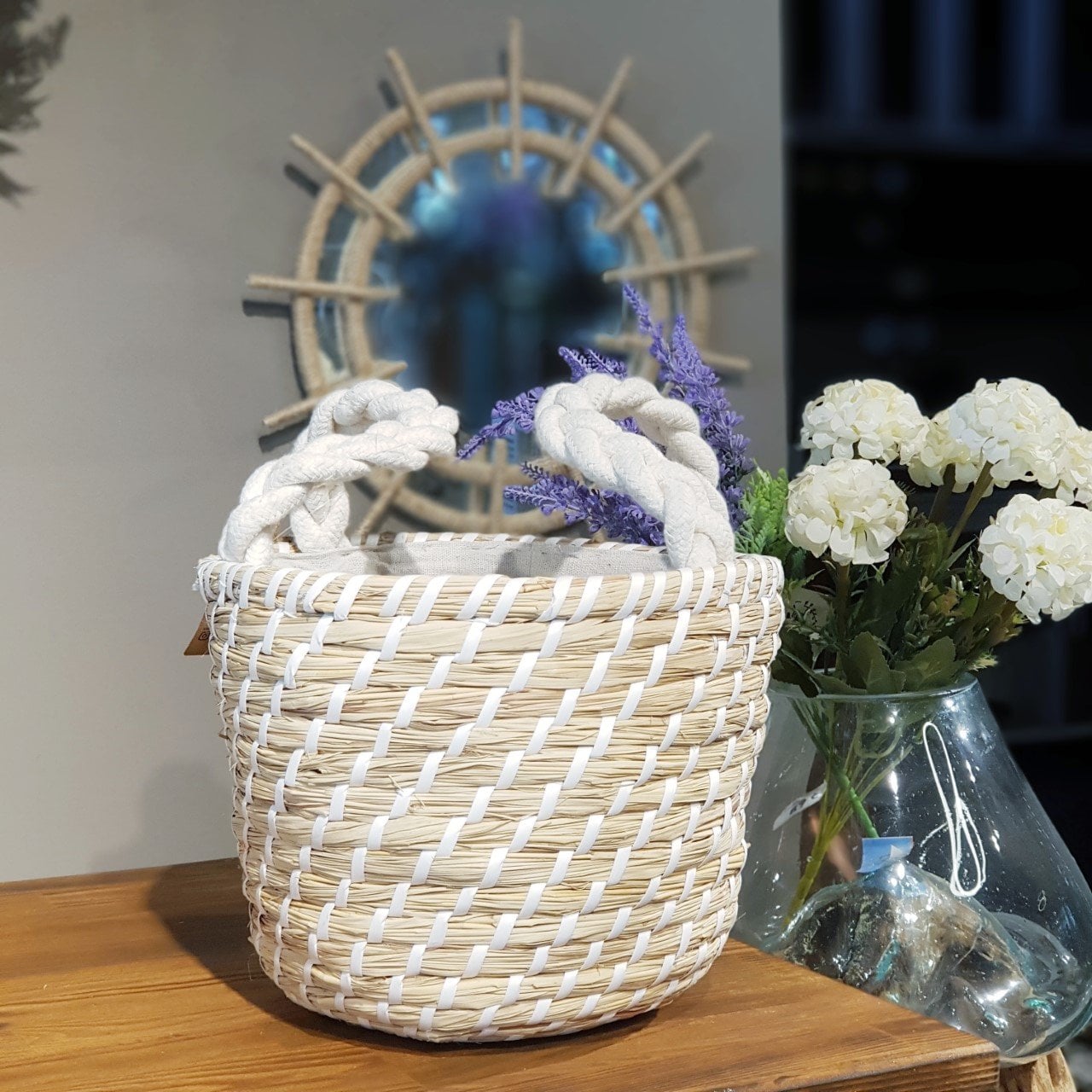 Yuvarlak Kulplu Hasır Sepet Mini Boy
